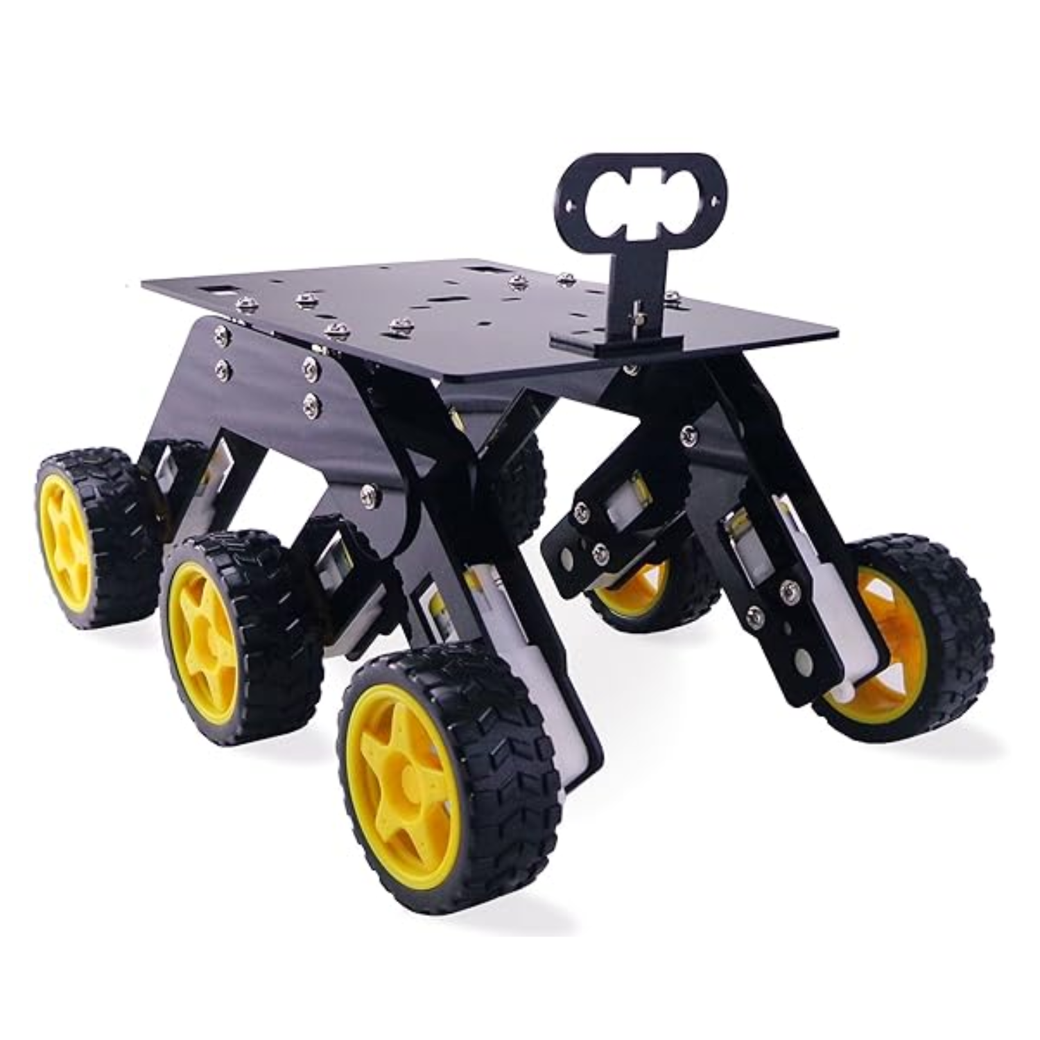 - 6WD (Wheel Drive) Curious Chassis rover is a robotic kit.