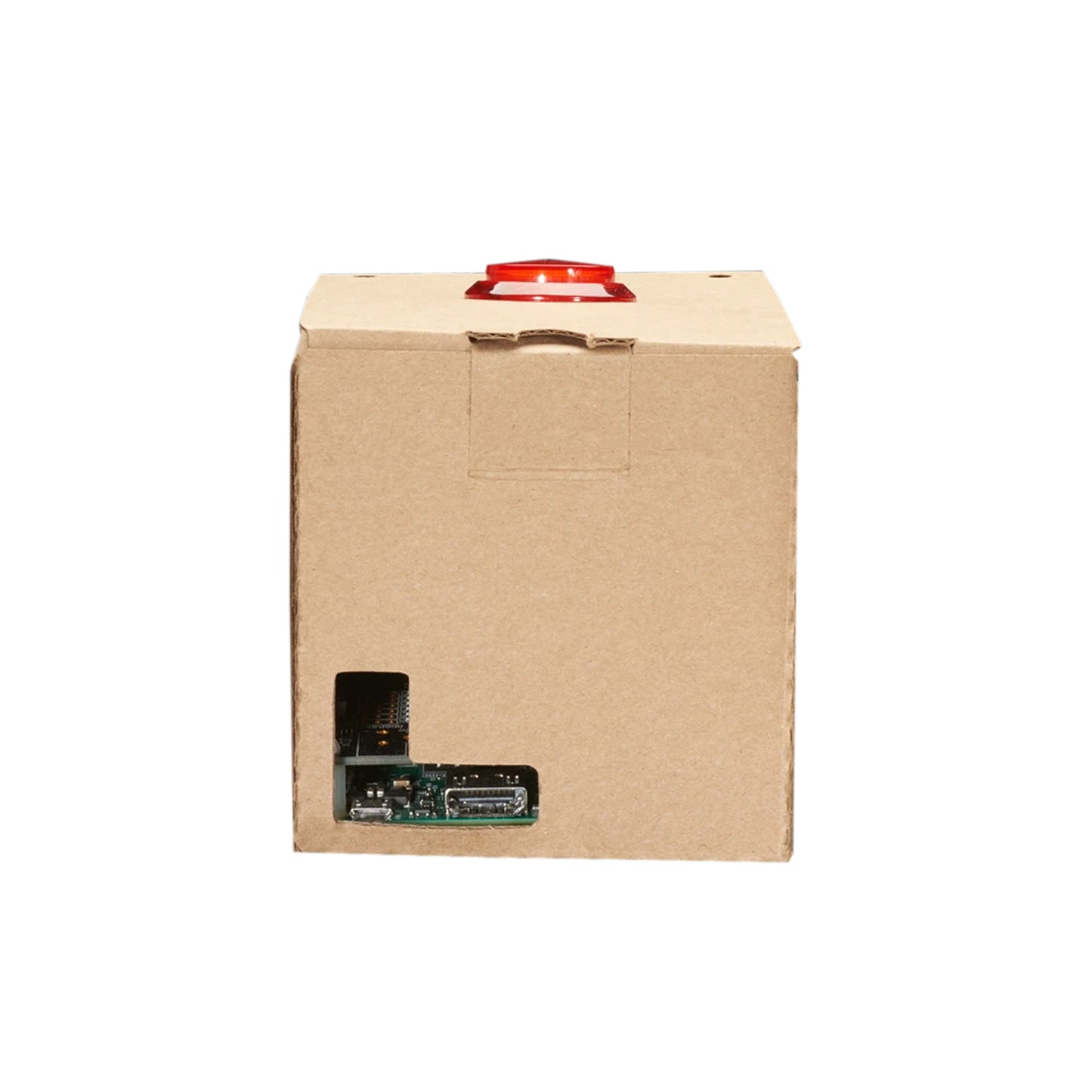 - Find your speaker (which is now attached to your Raspberry Pi 3).Slide the speaker into the U-shaped pocket on the cardboard frame.