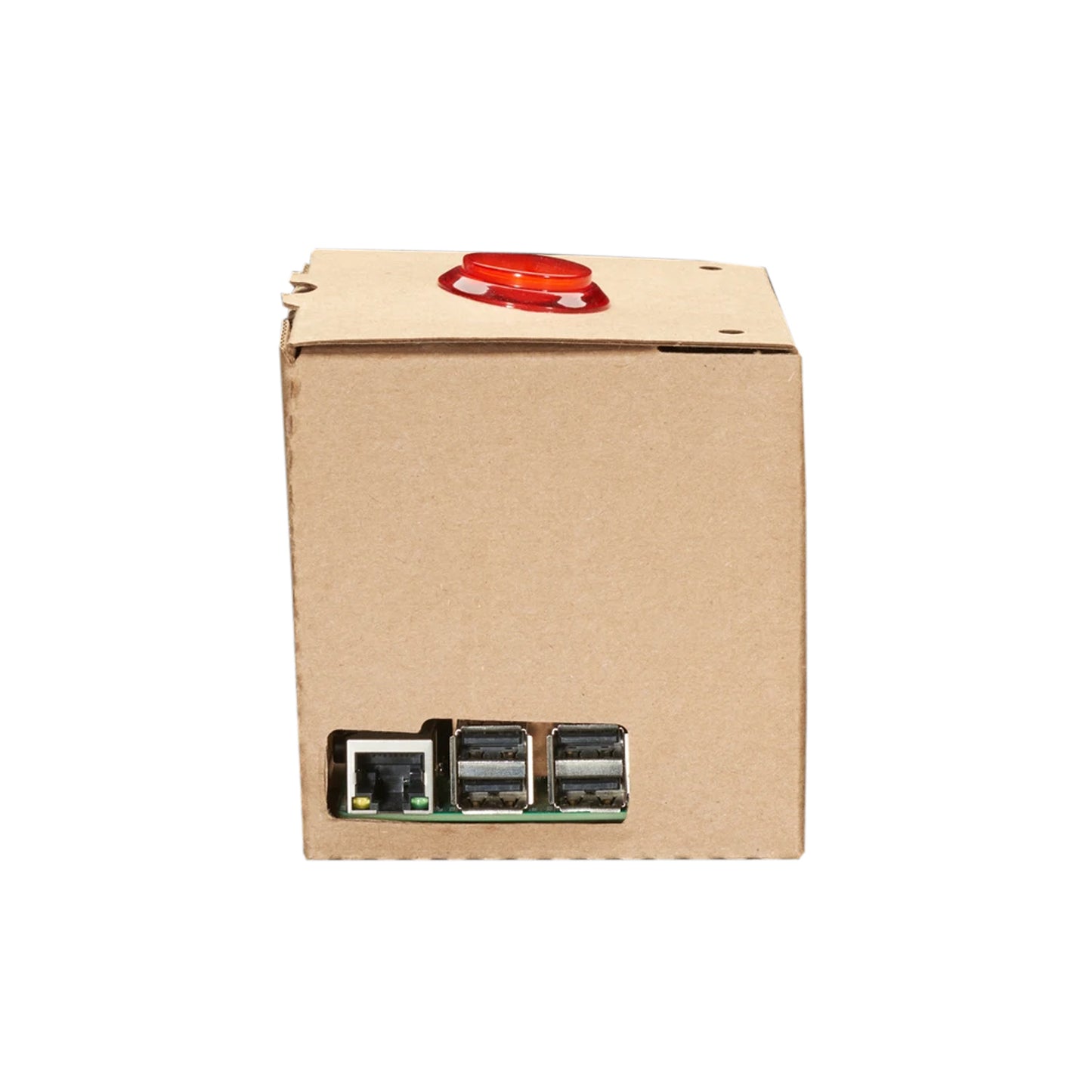 Caution: If your SD card is already inserted into the Pi, remove the SD card before sliding the hardware into the cardboard or it may break.