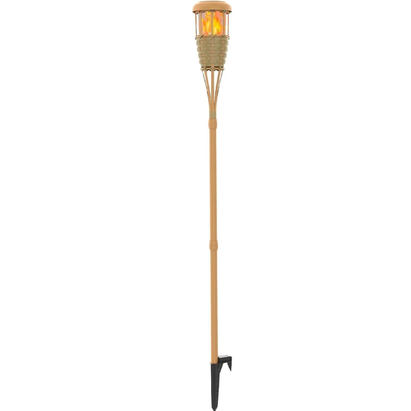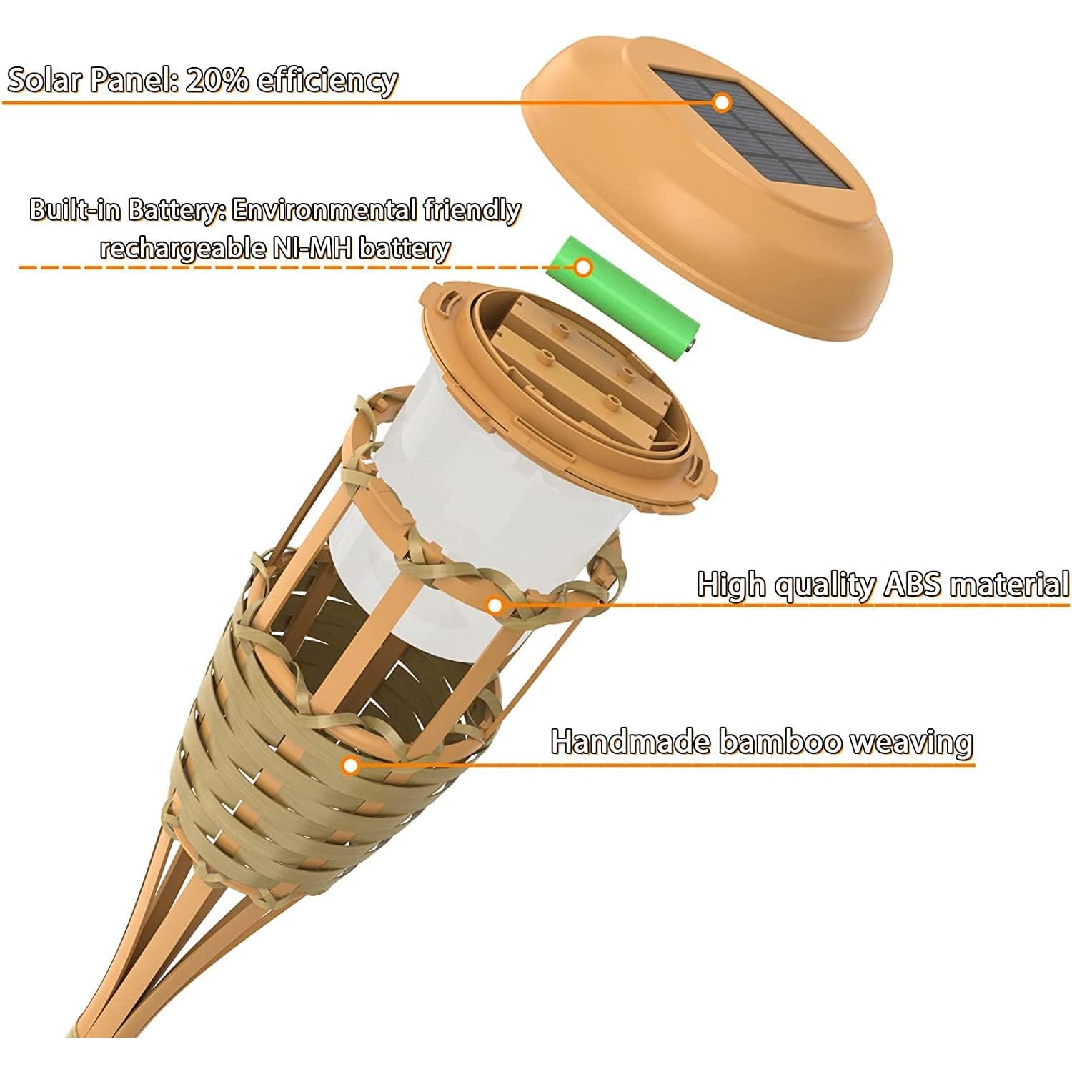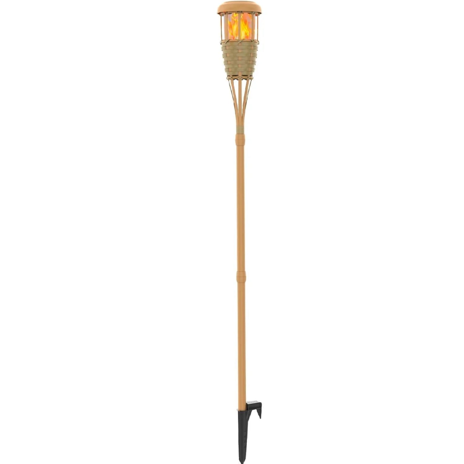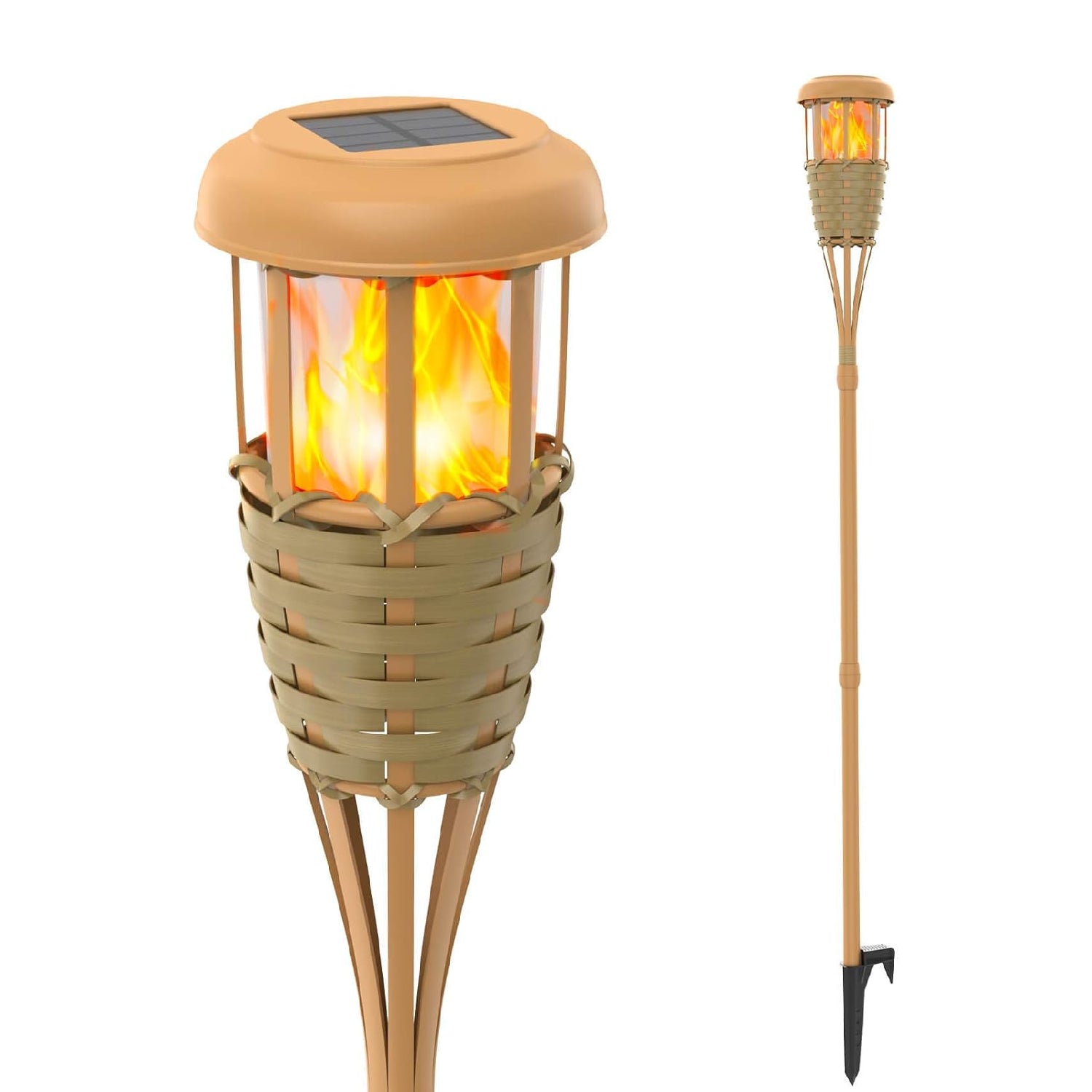 1 x Bamboo Designed Flickering Flames Solar Light Solar Powered Lights Flickering Flames - Upgraded Solar Torches Waterproof Outdoor Decorative Lighting Auto On/Off, Pack Of 1