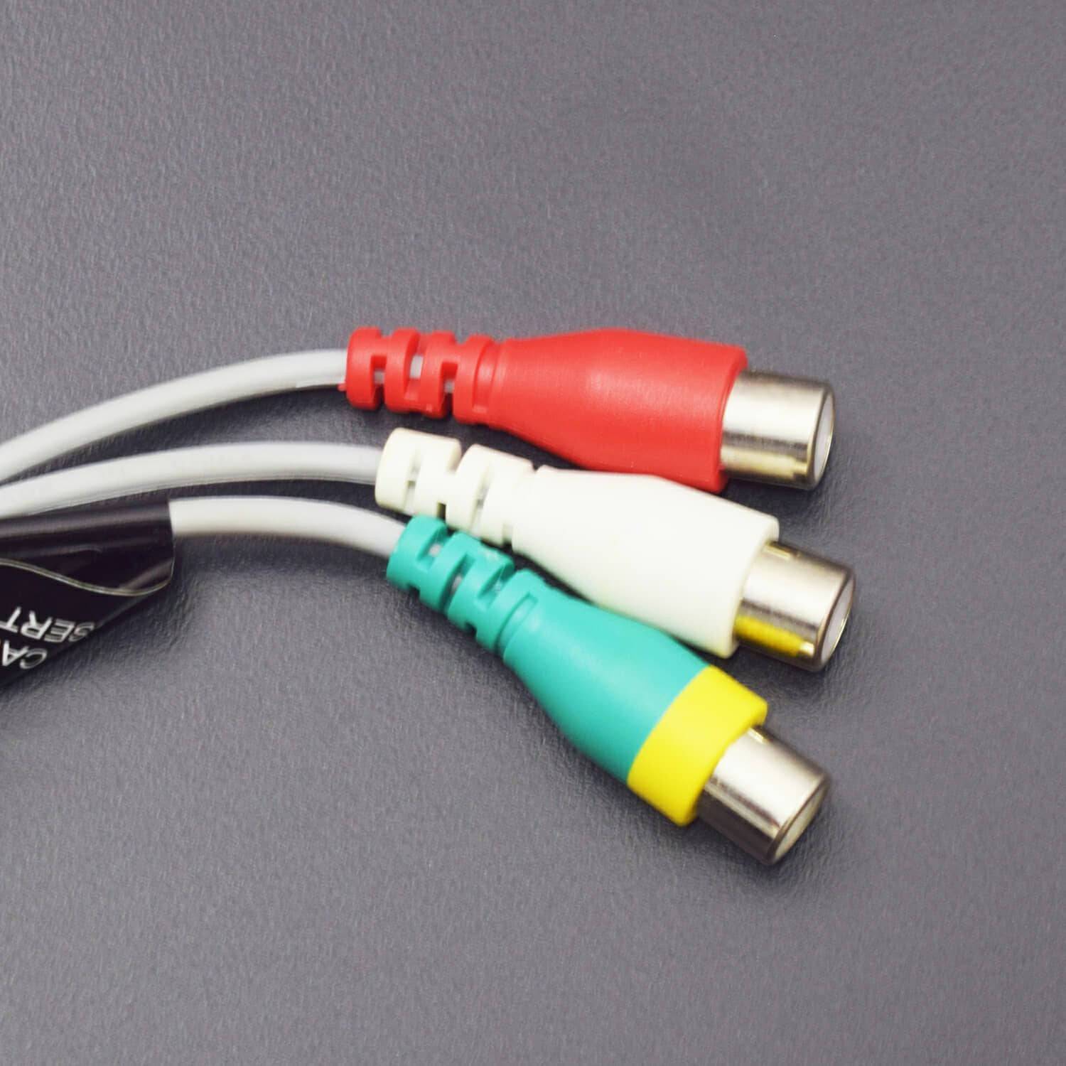 - Three standard RCA "R-AUDIO-L, VIDEO" (red-white-yellow) female connectors