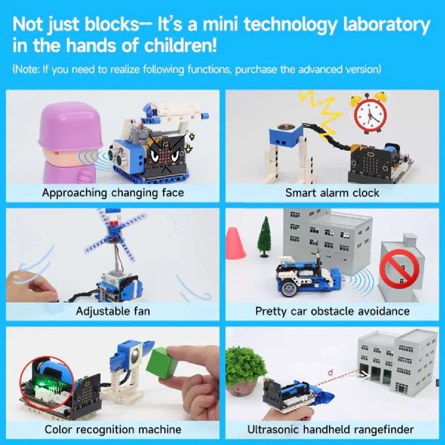 This all-in-one STEM robotics and AI learning kit is designed for students, hobbyists, and makers. Compatible with BBC Micro:bit V2 & V1.5, it offers 16 creative project modes – from smart cars and robotic arms to WiFi camera projects.