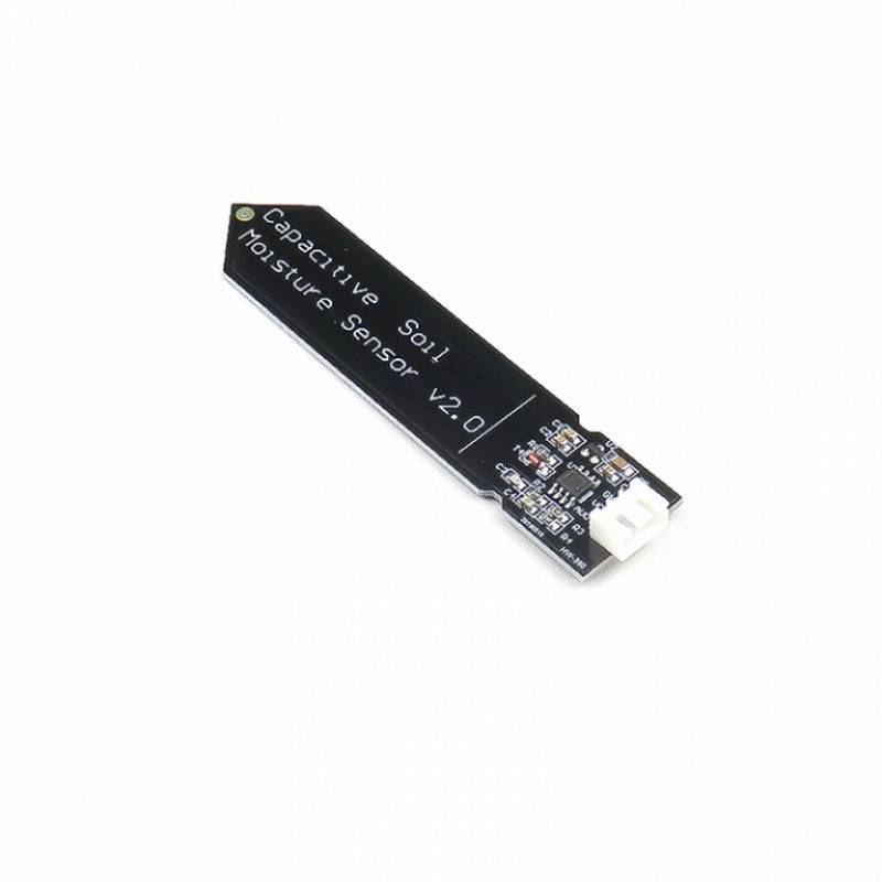 This capacitive soil moisture sensor V2.0 measures soil moisture levels by capacitive sensing rather than resistive sensing like other sensors on the market. It is made of corrosion-resistant material which gives it excellent service life. Insert it into the soil around your plants and impress your friends with real-time soil moisture data!