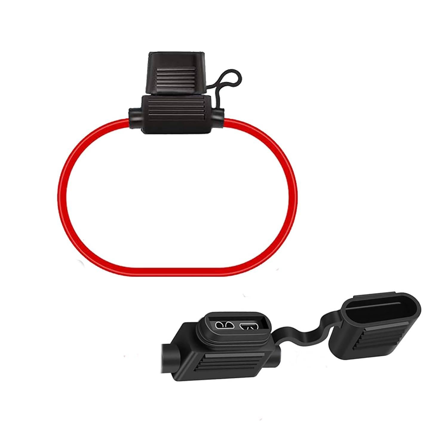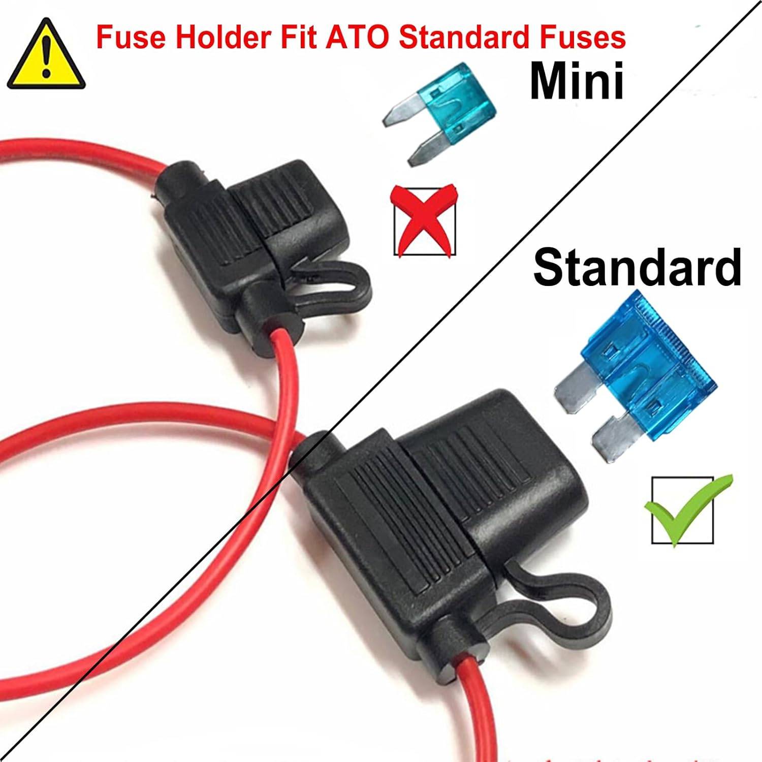 Car Fuse Holder Kit Support up to 30A fuses for 12V DC. It provides a tight-fitting rubber cap with an excellent water-proof design. NEVER easy to fall off or let water in.Easy to plug into an existing fuse holder without splicing or cutting. Keep your car and electric device in a safe condition.