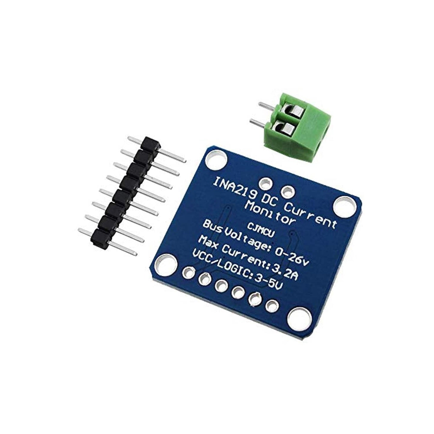 Since the amplifier's maximum input difference is ±320mV this means it can measure up to ±3.2 Amps. With the internal 12-bit ADC, the resolution at ±3.2A range is 0.8mA. With the internal gain set at the minimum of div8, the max current is ±400mA and the resolution is 0.1mA. Advanced hackers can remove the 0.1-ohm current sense resistor and replace it with their own to change the range (say 0.01 ohm to measure up to 32 Amps with a resolution of 8mA). INA219-40 c to + 85 c temperature range and can realize the maximum error of 1% accuracy, a maximum offset of 100 μV. The advantage of the high precision of the product in combination with 12 resolution, can help clients as much as possible, reduce the pressure drop on the shunt resistor, which can minimize the power loss and power consumption, and save board space. The CJMCU-219 Power Supply Monitoring Module epic of 26 bus voltage range of 0 V to + V.