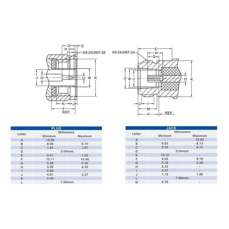 - Center Contact Resistance : 1.0 m (Milliohms max.)