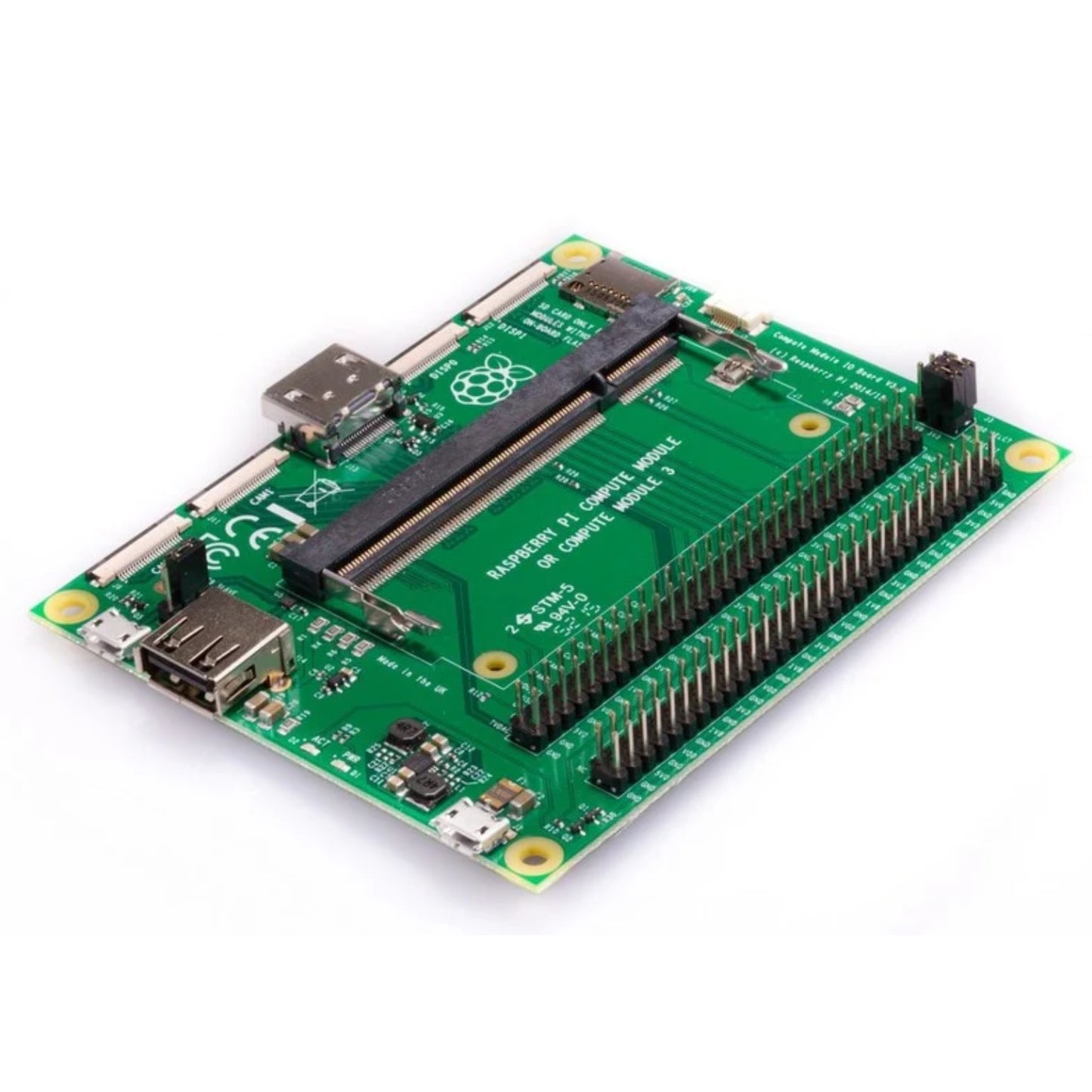 The Compute Module 1/3/3+ IO Board is a development kit for those who wish to make use of the Raspberry Pi in a more flexible form factor, intended for industrial applications. The 1/3/3+ IO Board is made for developing with CM3+, CM3, and CM1.