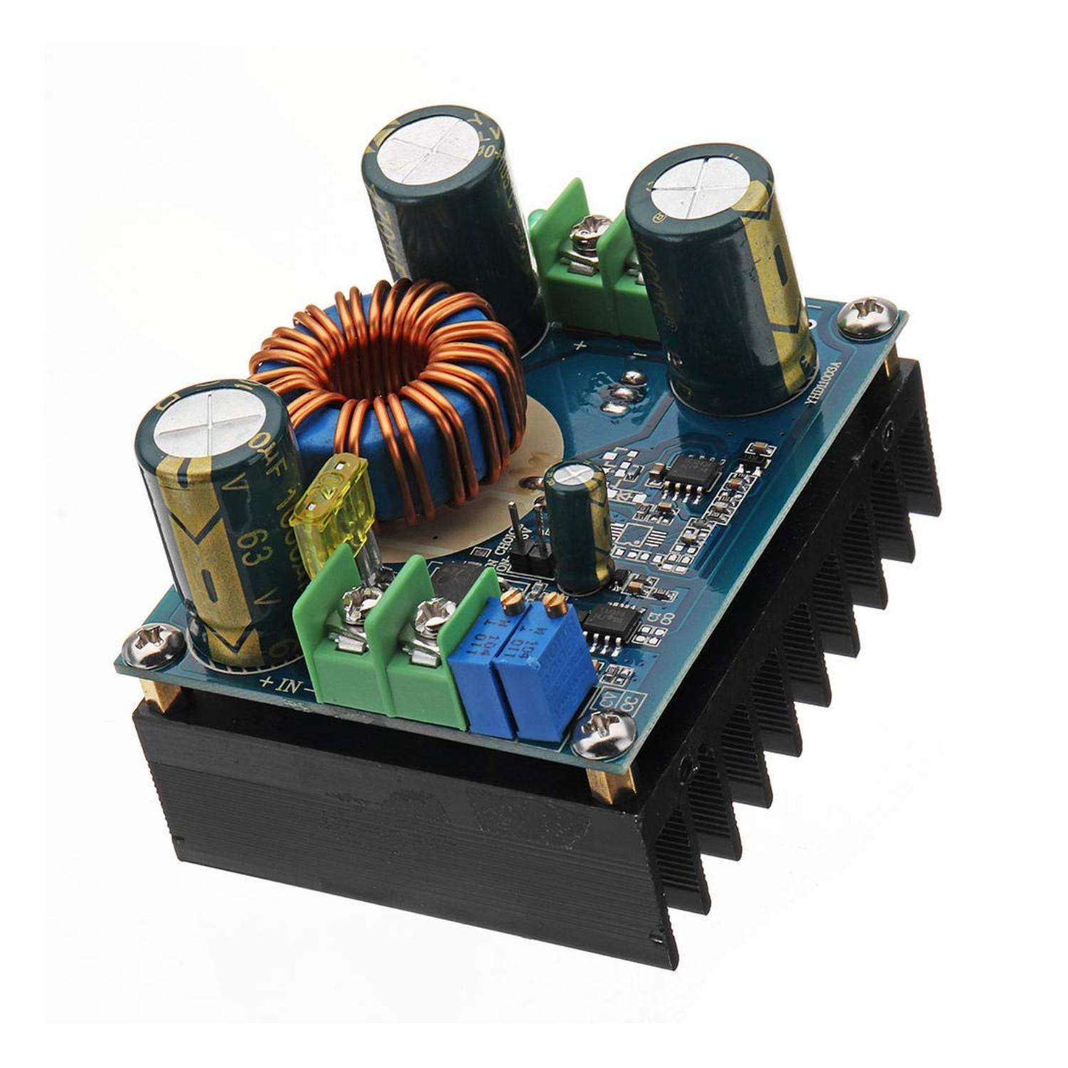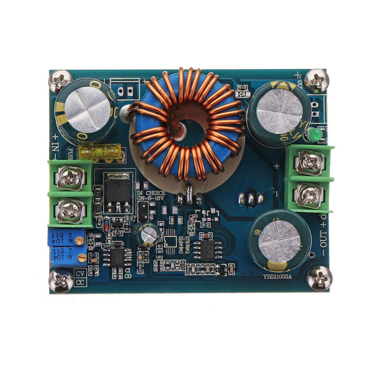 This is a DC boost converter, 600W 12A DC-DC step-up converter board 8-16V 12V 24V to 12-60V 48V voltage regulator booster module adjustable voltage step-up power supply module. This DC boost voltage converter inputs 8-16V; 600W 16A Boost power module output 12-60V, large adjustable range for various electronics.