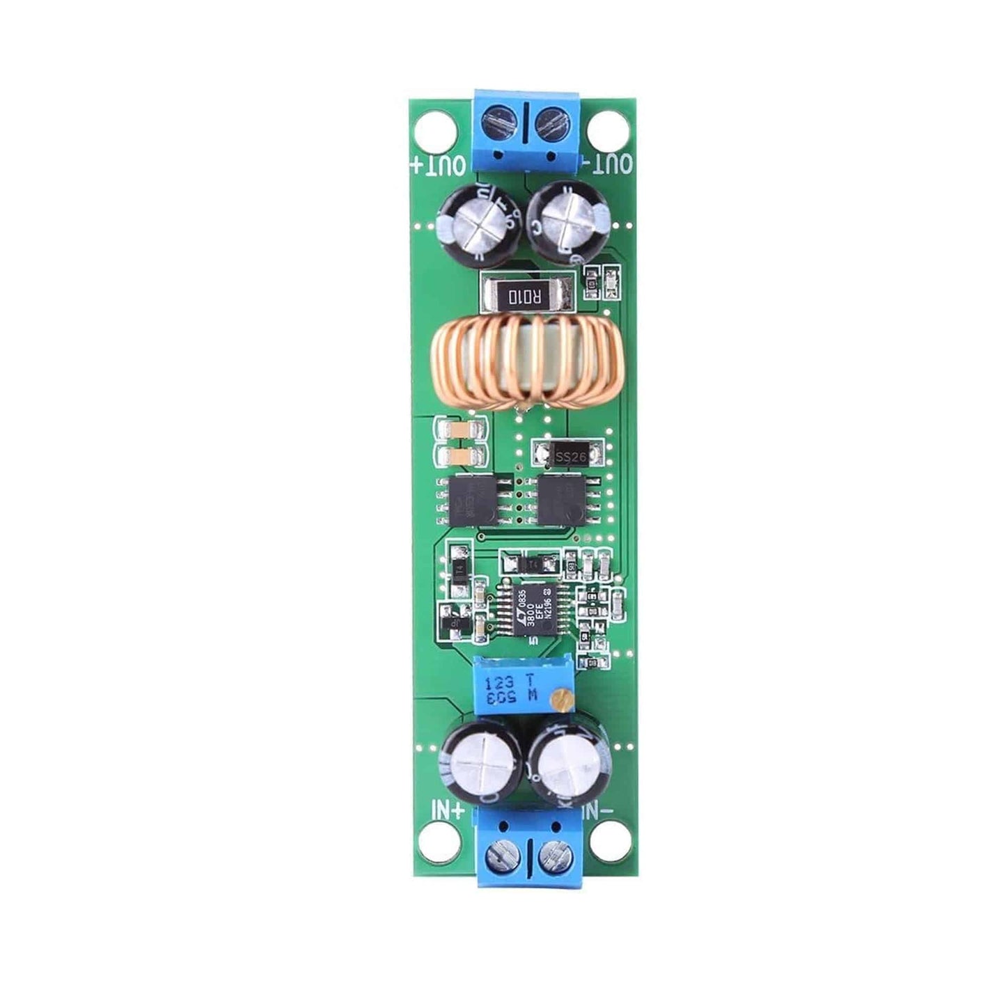 This is a DC-DC Buck Converter module that converts 6.5V-60V to 1.25-30V, the maximum current is 10A. DC-DC Buck Converter module is used for voltage step-down so please make sure that the input voltage is higher than the output voltage. The Buck Converter can be remarkably efficient (maximum 97%), making it useful for voltage step-down. Input and output are designed with screw terminals for convenient connection. Widely used for low voltage system power supply, 6V, 12V, 14V, 24V battery charging and regulated power supply.