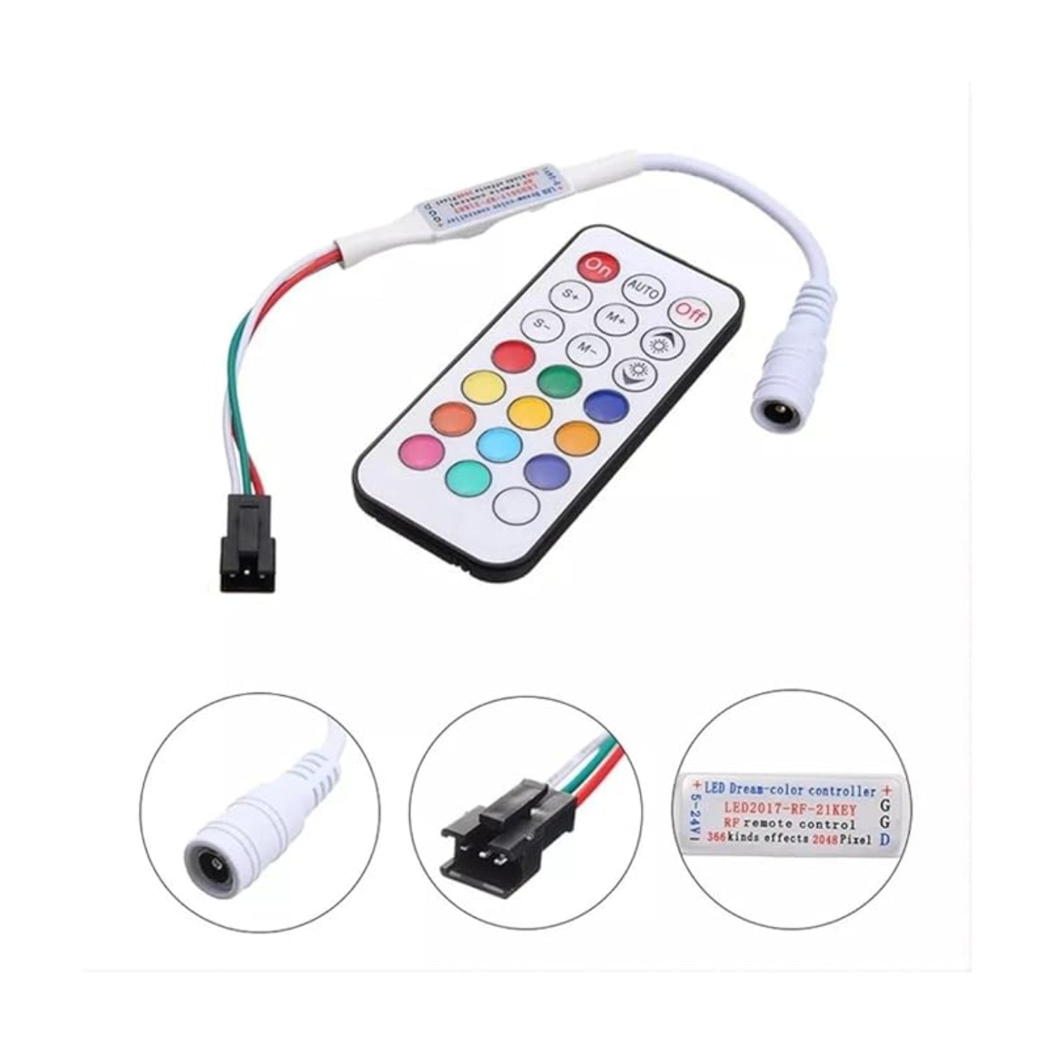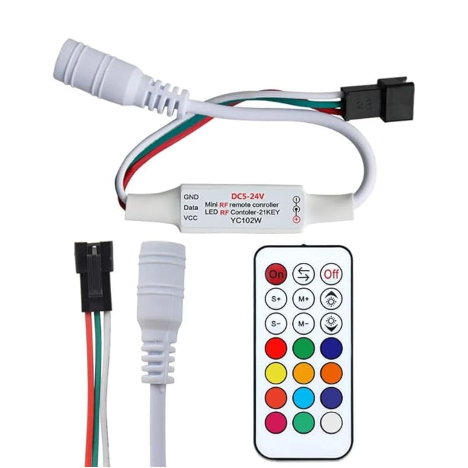 1 x DC5-24V Mini RF Remote LED Controller 21 Key RF Remote LED Controller WS2811 WS2812B LED Dream Color Strip Light Remote Wireless Remote Control Mini Remote Controller For LED Strip Lights