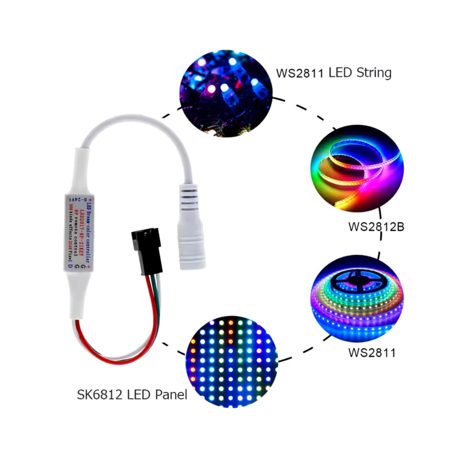 DC5-24V Mini RF Remote LED Controller's brightness is adjustable. Each controller can control up to 1024 pixels. Its wire connection is simple and very easy to use. It is widely used in the illumination of emporiums, shopping malls, meeting rooms, clubs, hotels, and performances.