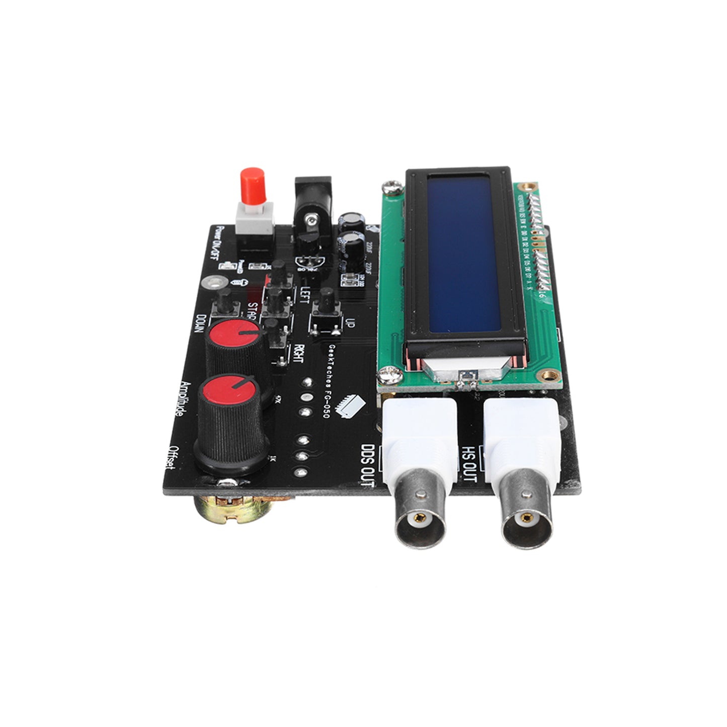 This is a function (waveform) signal generator designed with1602 LCD screen and intuitive 5 buttons. It can produce some specific periodic time function waveform (sine, square, triangle, sawtooth, pulse wave, etc.) signal. The frequency ranges from a few Hz to tens of MHz micro-function signal generator circuit experiments and equipment detection of an extensive range of applications. DDS signal amplitude of the offset amount can be adjusted separately by two potentiometers. The power automatically restores the last used configuration.