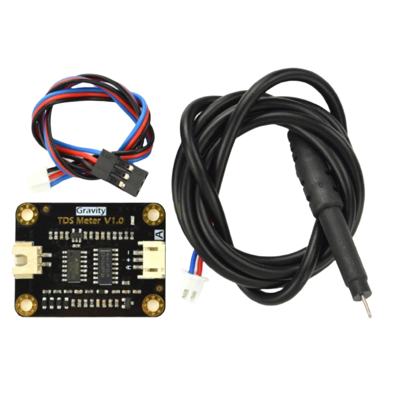 DFRobot Gravity: Analog TDS Sensor/Meter for Arduino is an Arduino-compatible TDS Meter Kit for measuring the TDS value of the water, to reflect the cleanliness of the water. TDS meter can be applied to domestic water, hydroponic, and other fields of water quality testing with this product, you can easily DIY a TDS detector to reflect the cleanliness of water to protect your health.