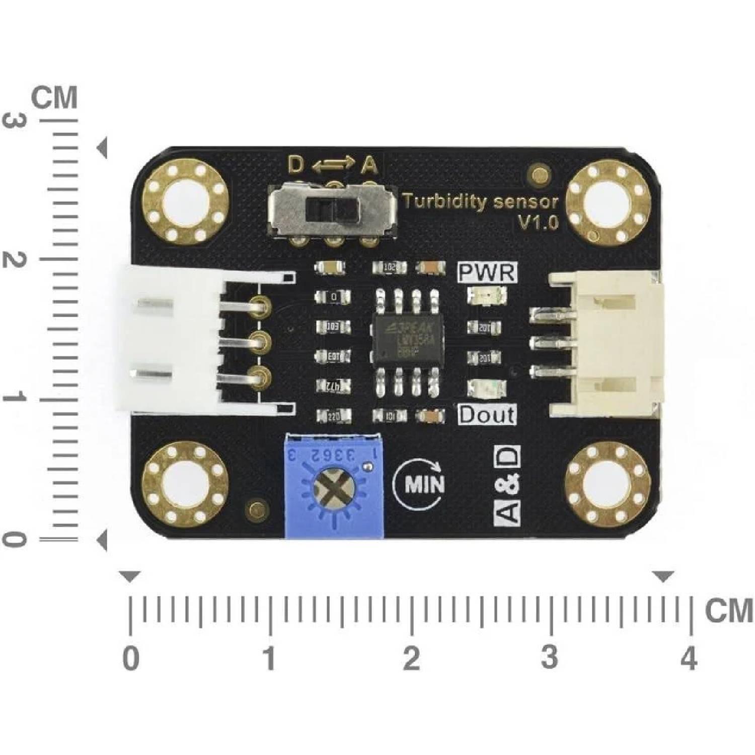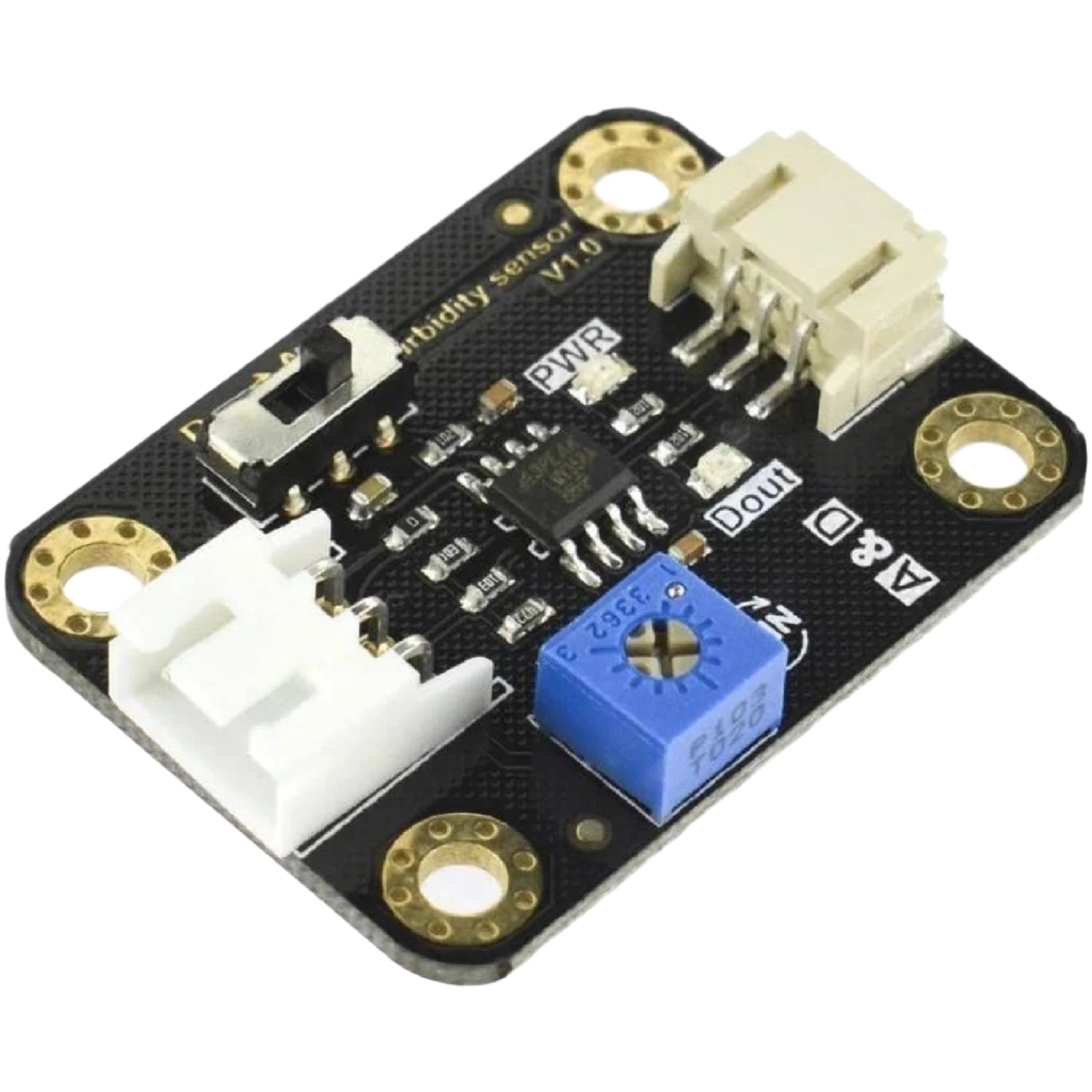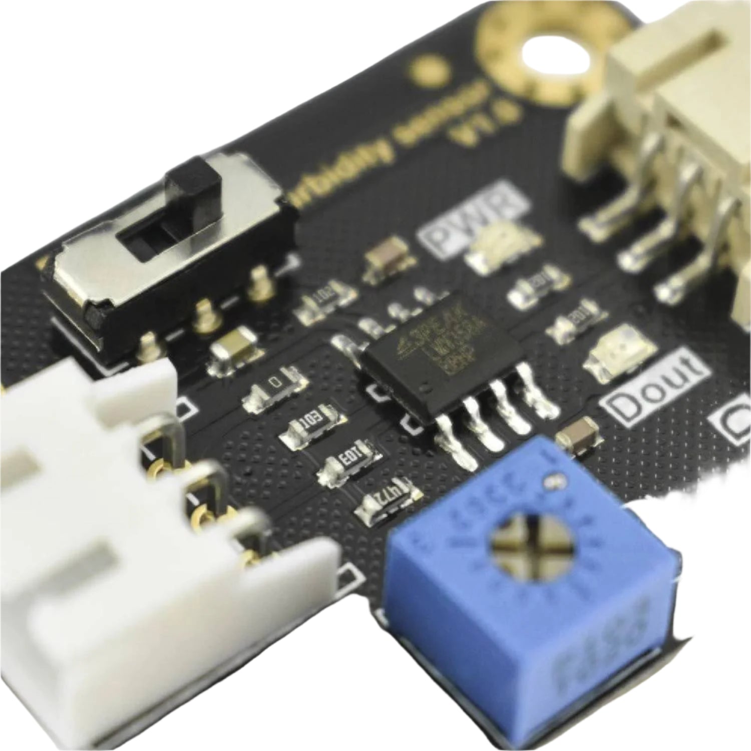 This Arduino turbidity sensor has both analog and digital signal output modes. You can select the mode according to the MCU as the threshold is adjustable in digital signal mode. Turbidity sensors can measure water quality in rivers and streams, wastewater and effluent, sediment transport research, and laboratory measurements.