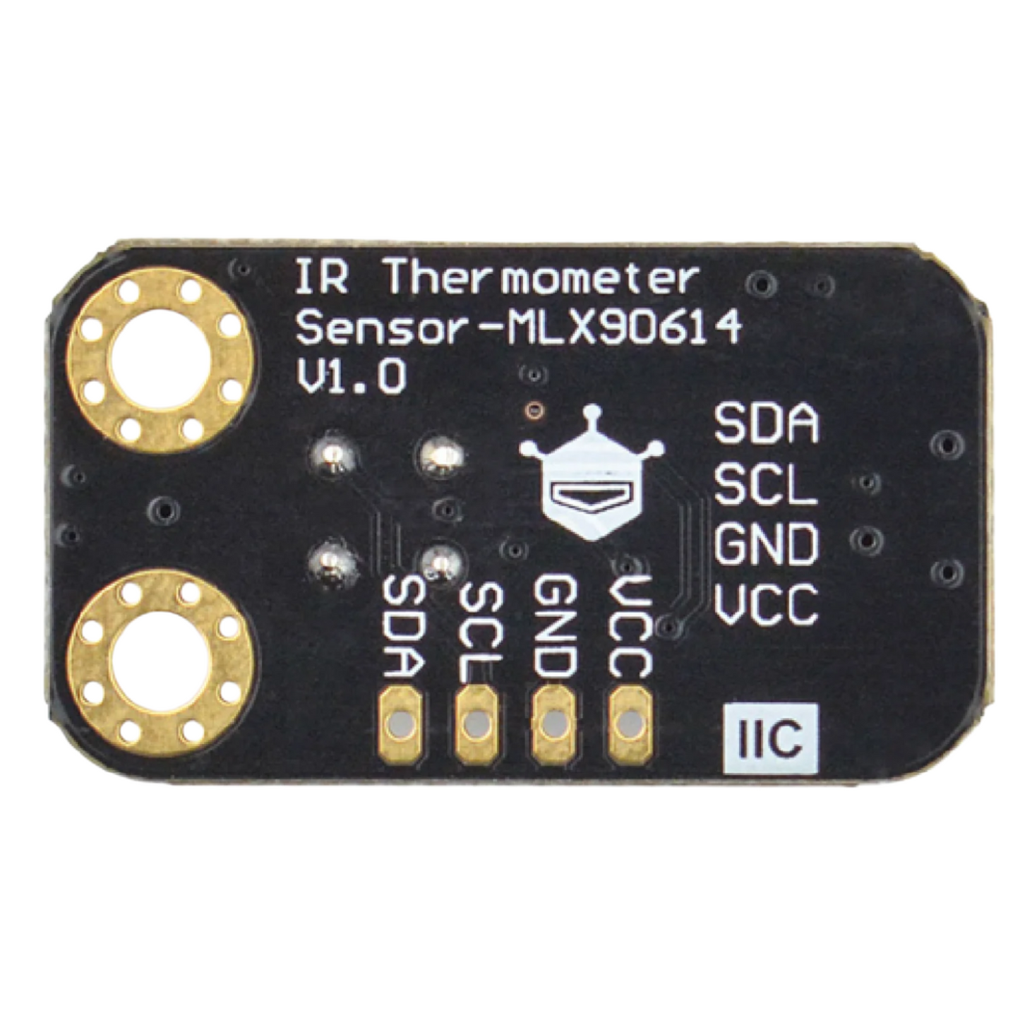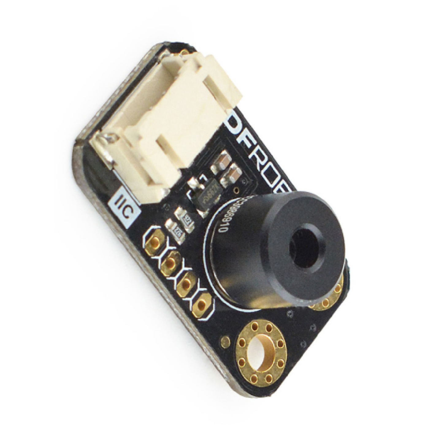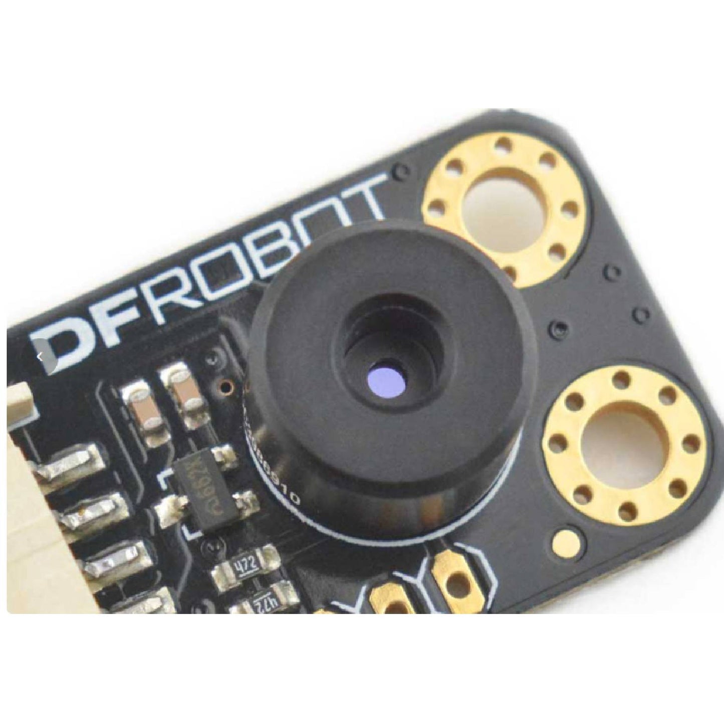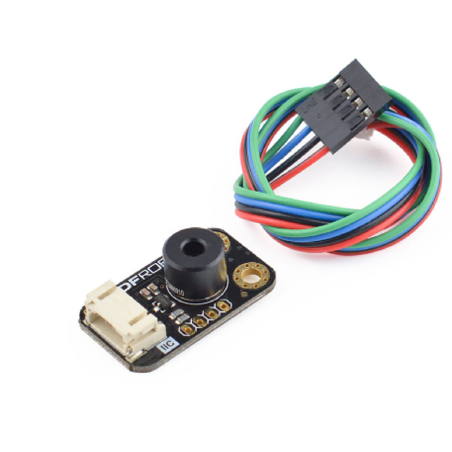 DFRobot Gravity I2C Non-contact IR Temperature Sensor: We can divide temperature measurement into two types: contact and non-contact. Contact measurement can only accurately measure temperature when the testing object and the sensor reach thermal equilibrium. This can mean longer response times and reading inaccuracies offset by ambient temperature. By contrast, non-contact measurement uses infrared radiation to measure the temperature and does not require a direct touch. Additionally, this method of measurement can be read quickly and accurately.