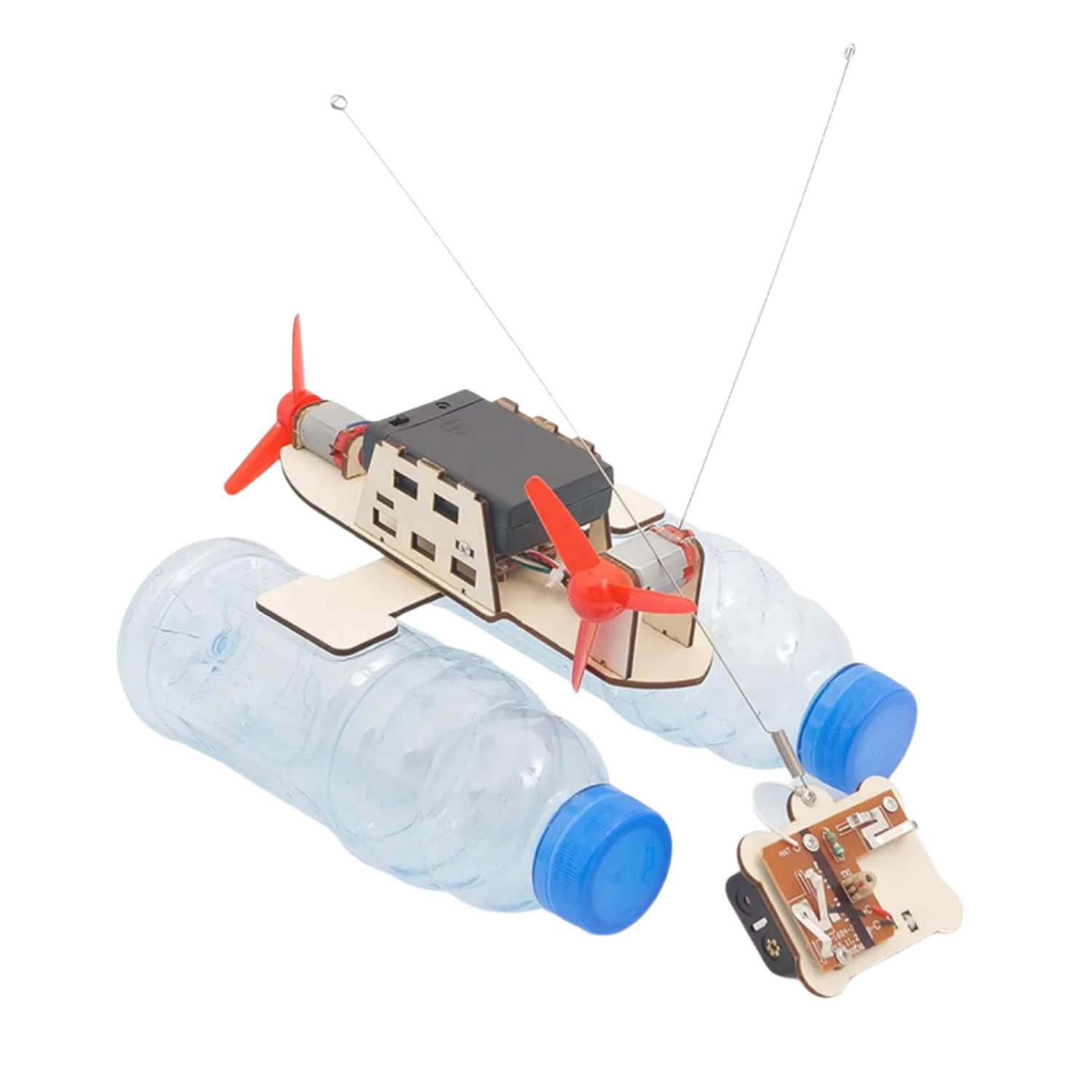 interesting remote-controlled DIY boat. Can turn forward, backward, turn left, turn right. The board has no waterproof function, please pay attention to the water resistance. perfect learning toy for children, helps to improve children's ability, can be used as a scientific teaching experiment model, children can learn about science technology, and physics experiments, and promotes children's intellectual development.