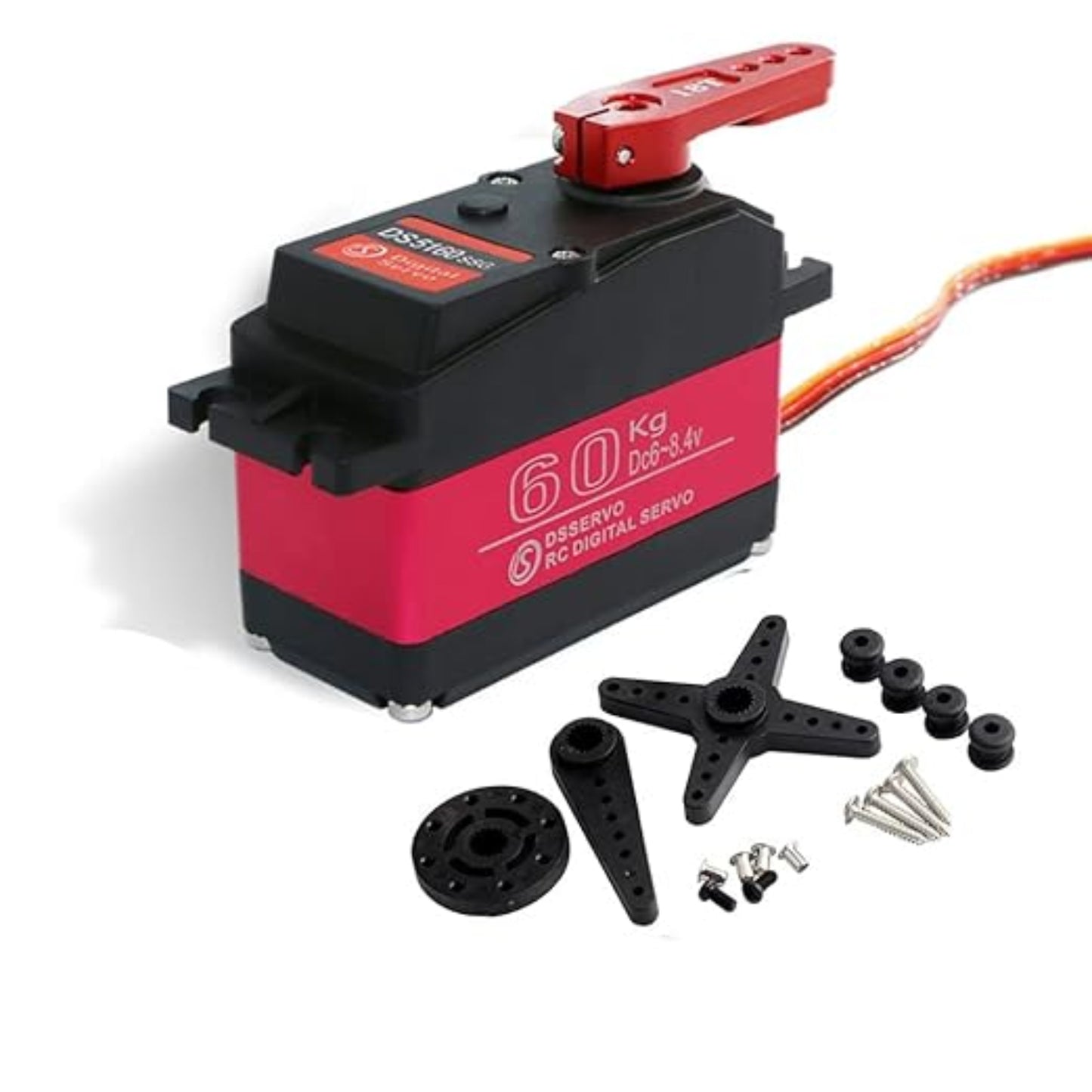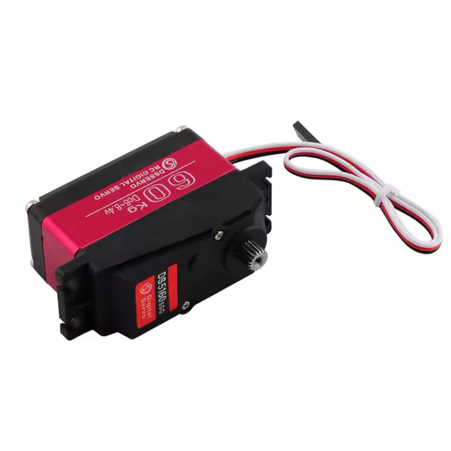 DSServo DS5160SSG 60kg Waterproof Digital Servo with CNC aluminum middle Shell for better heat dissipation, two ball bearings on the output shaft for reduced friction.Light weight, high speed big torque, water-resistant, sensitive, responsive, and low noise. Its’ Stainless Steel Gear offers faster speed and accuracy and longer service life. It also has plenty of power, is super strong and stable, and will help you to control your model better.