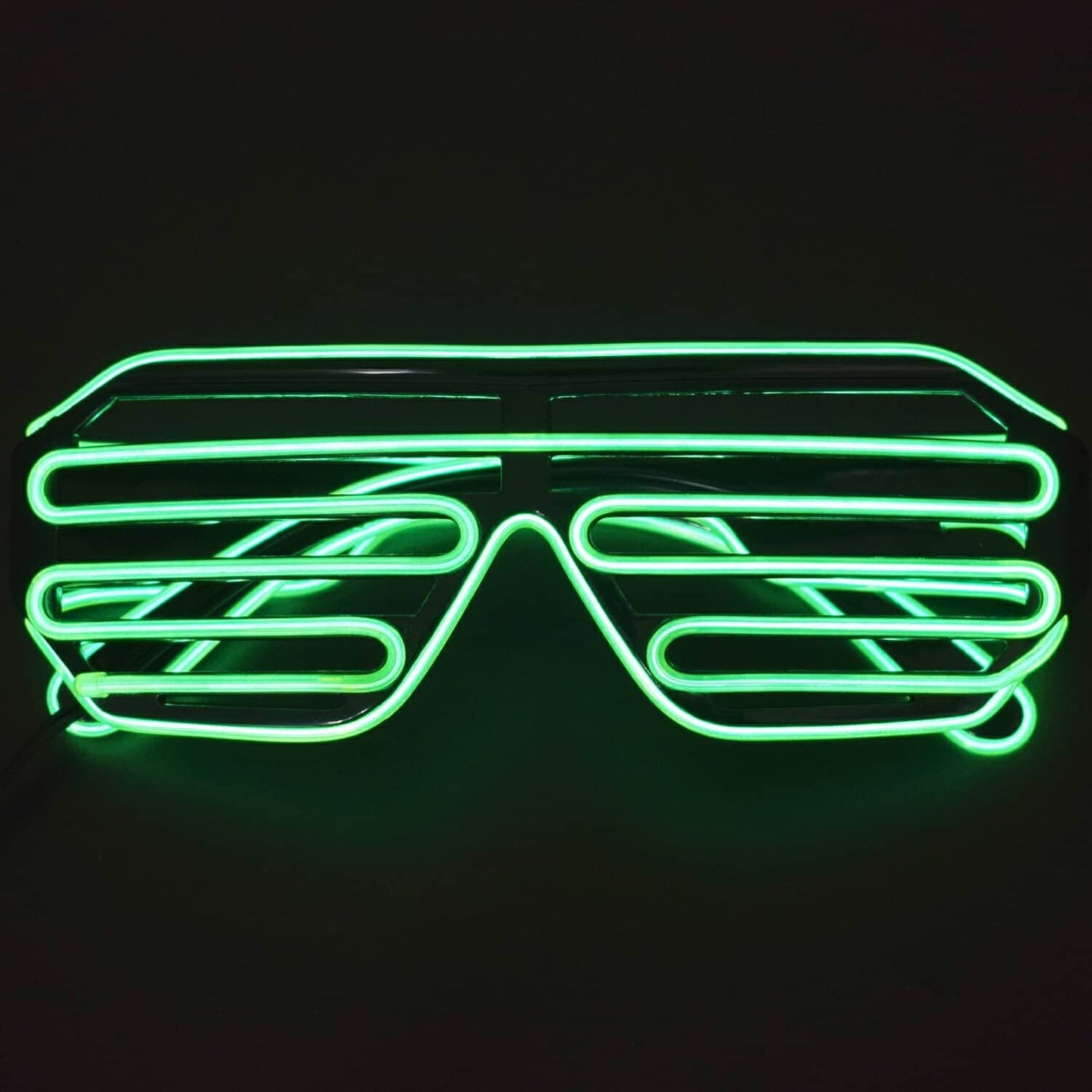 - Easy to use. Single-button design. Press the button on the battery pack to change the EL glasses to light in any one of four modes: steady glow / blinking / voice activated light up / off.