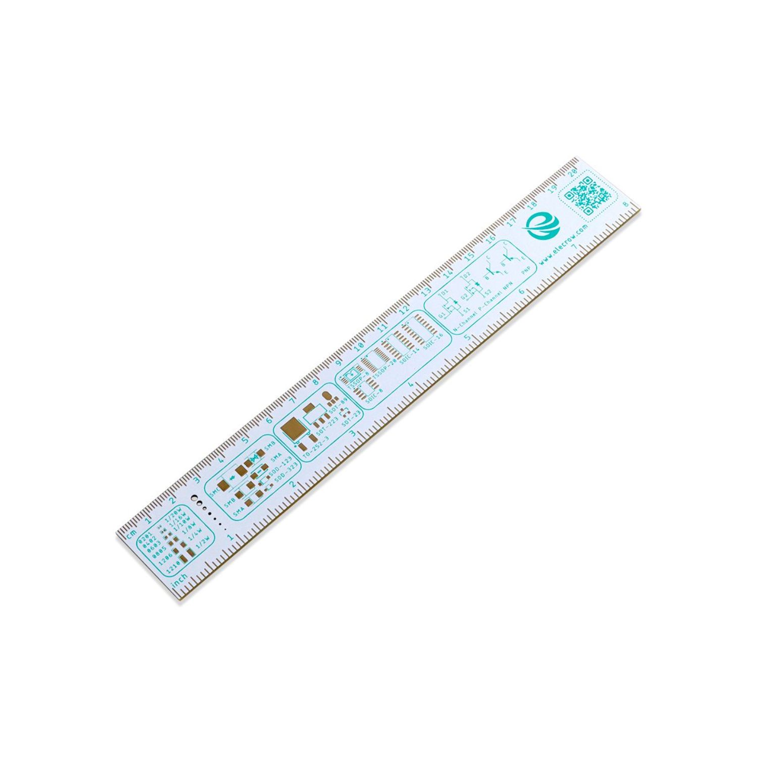 The first time you soldered up a surface mount component, you may have been surprised, "these are really small parts!" and there are dozens of different names too! QFN, SOT, SOD and so on, what do they mean and how can you tell how big they are? Now you can have a reference board at your fingertips with this snazzy PCB reference ruler. Measuring approx 1" - 8", this standard-thickness PCB ruler has the most common component packages you'll encounter. It also has a font size guide and, trace-width diagram.