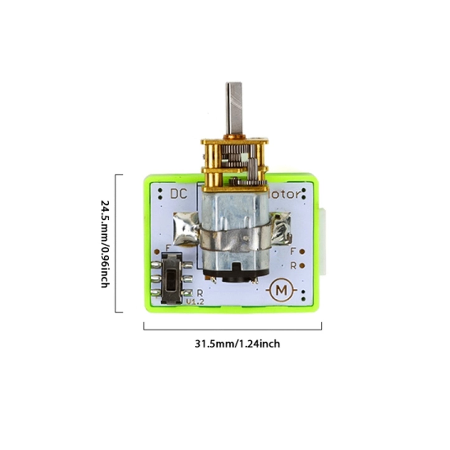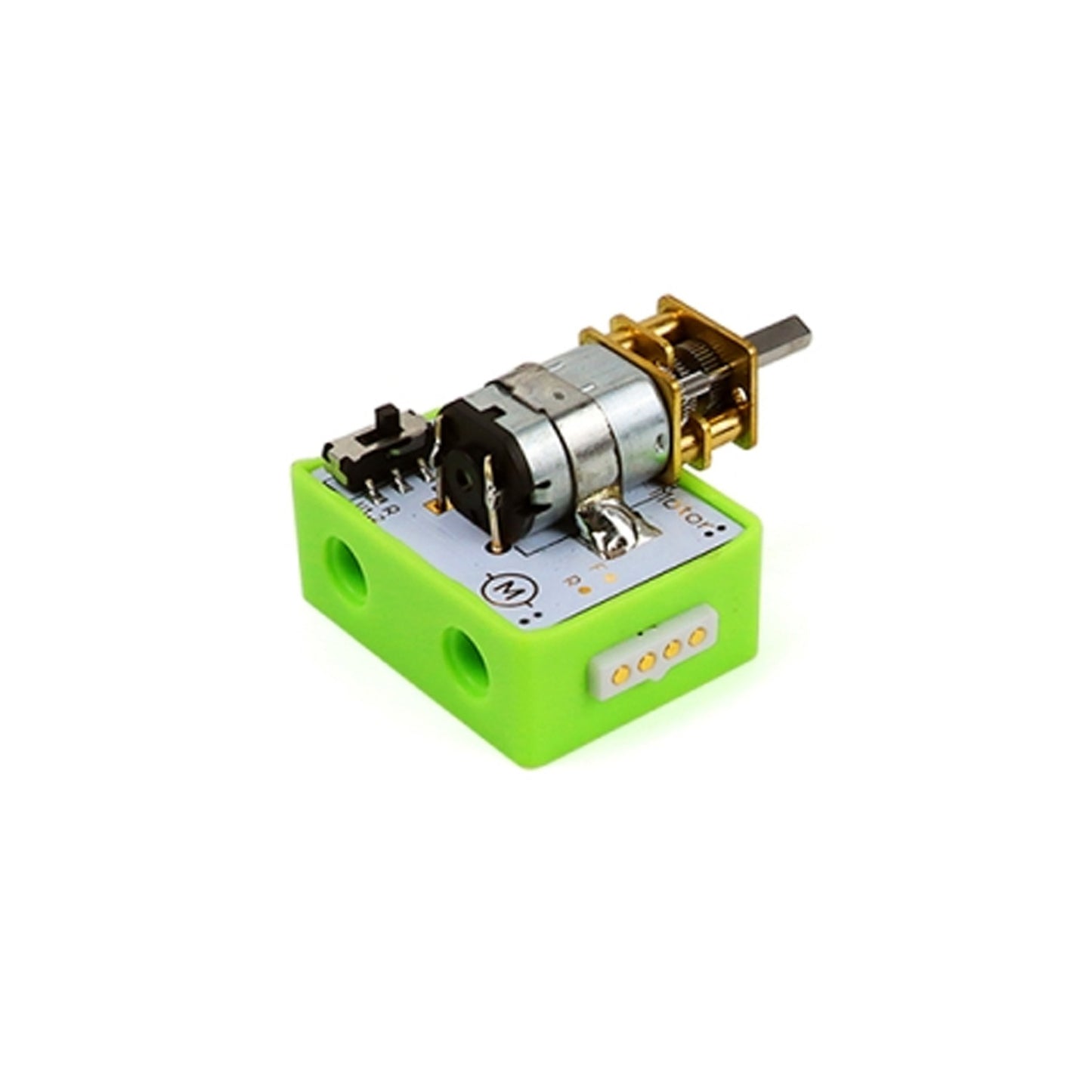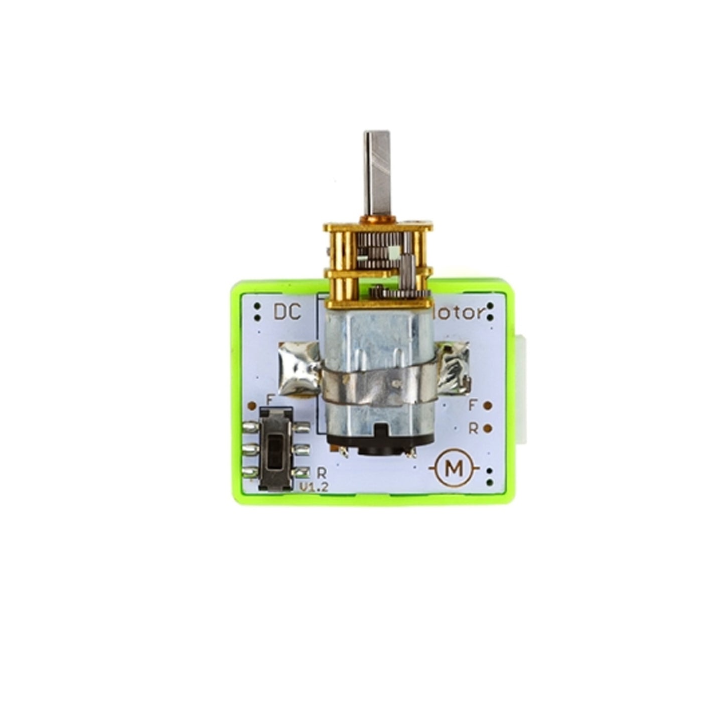 Use the DC motor together with an input module, such as a button. When you press the button, the motor rotates.