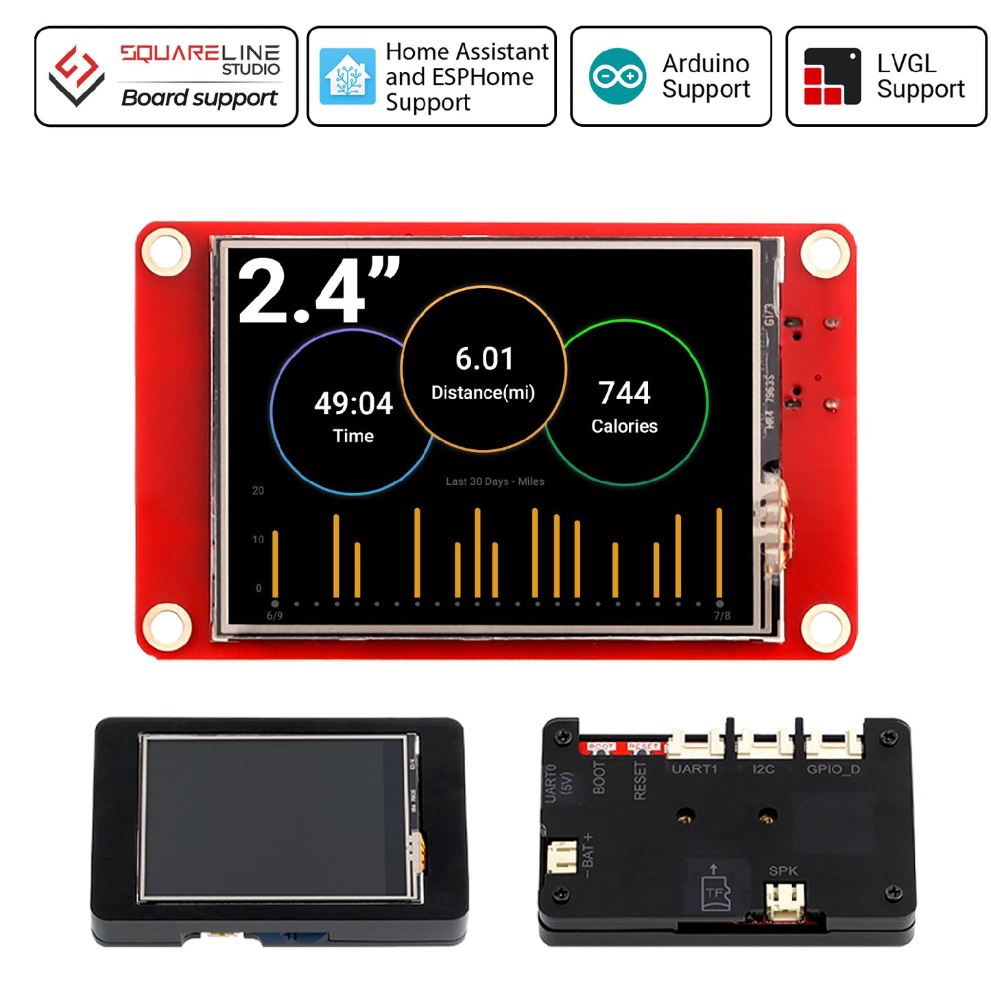 2.4" TFT Touchscreen for Arduino and More to supports development environments such as Arduino IDE, Espressif IDF, Lua RTOS, and Micro Python, and is compatible with the LVGL graphics library, supportsopenhasp.openHASP. This enables developers to not only customize their own UI interfaces but also to create interesting projects quickly and easily, greatly shortening the development cycle. The CrowPanel 2.4" ESP32 Touch Display is suitable for a wide range of scenes such as automotive HMI, medical equipment, industrial control, power, civil electronics, automation, GPS, new energy, and IoT application devices. Its various interfaces and expansion functions make it able to meet the needs of different fields, providing users with a more comprehensive solution.
