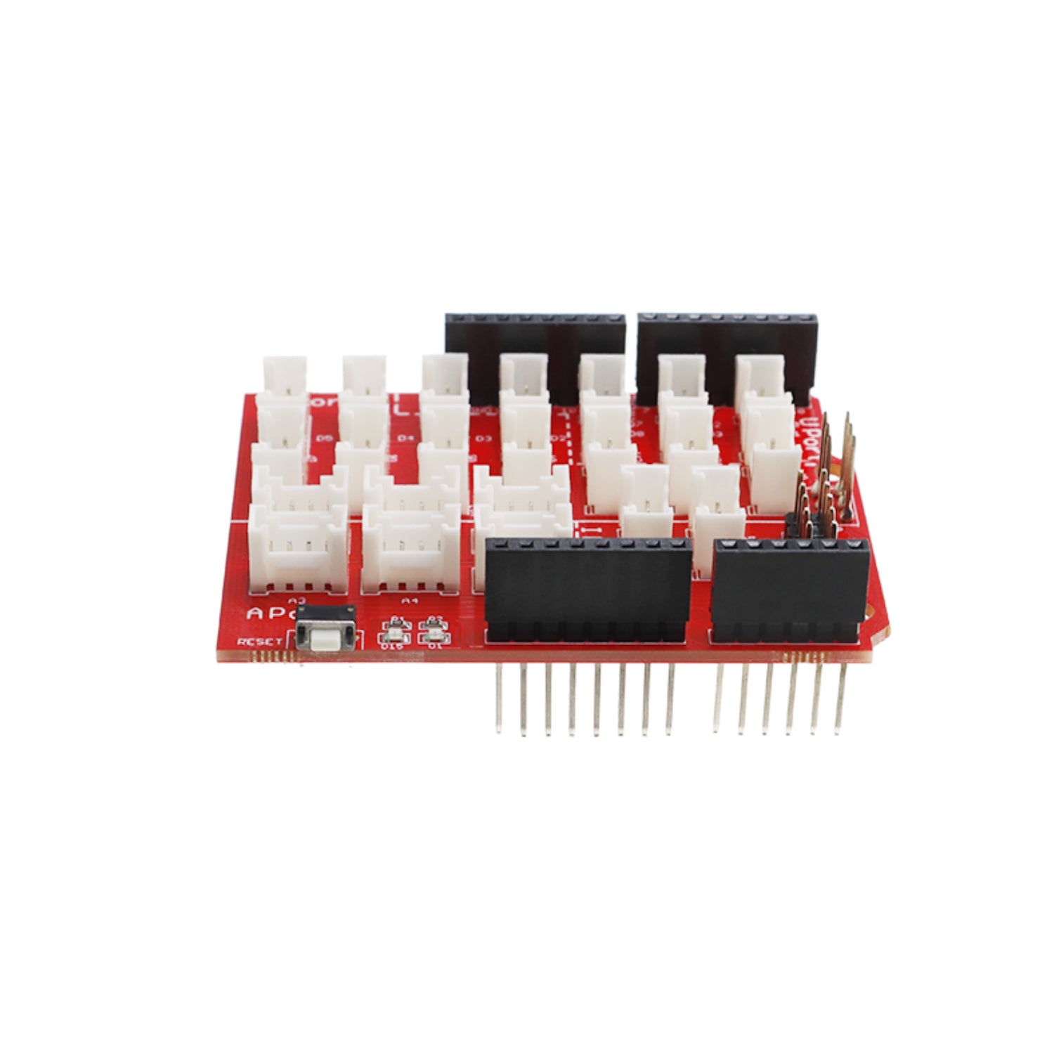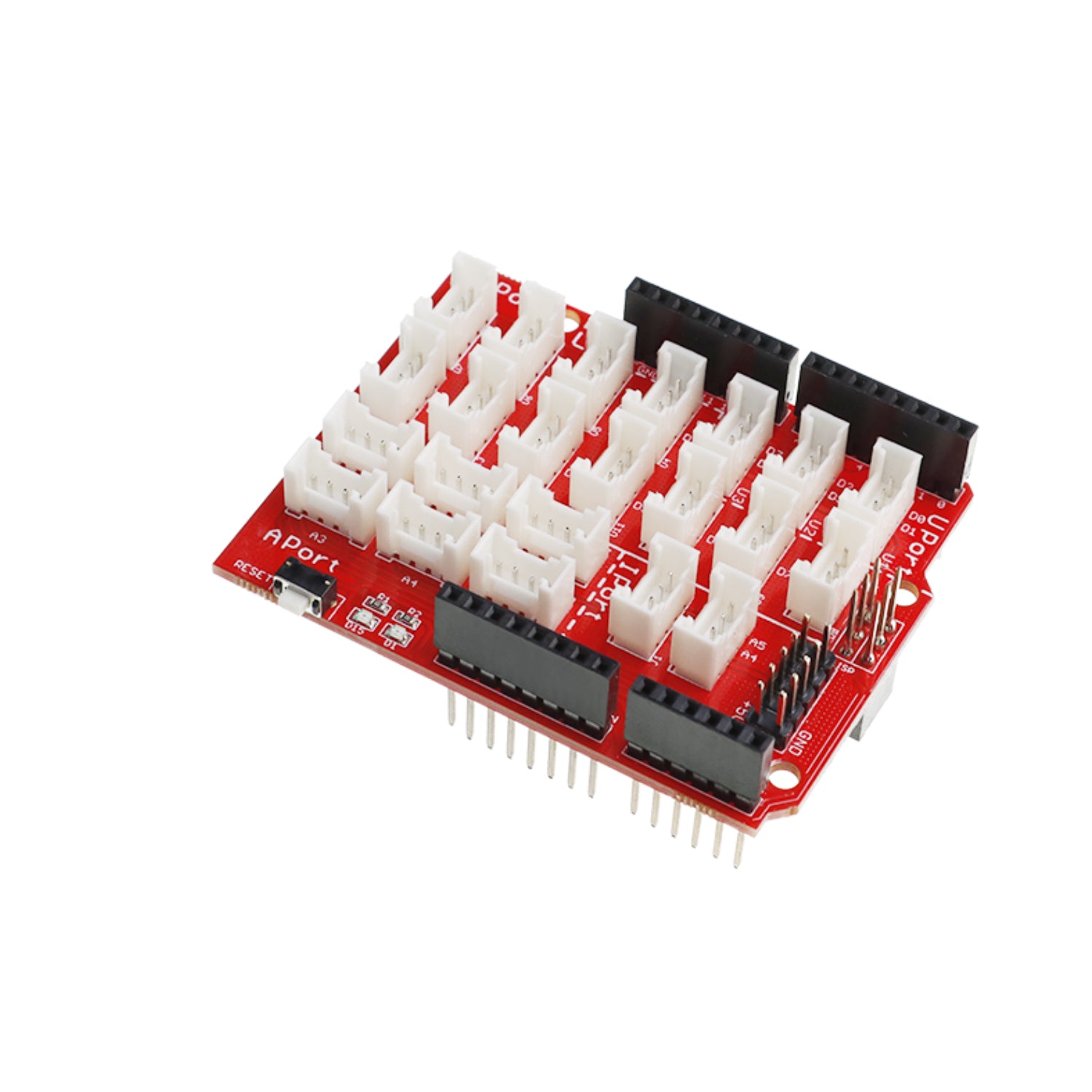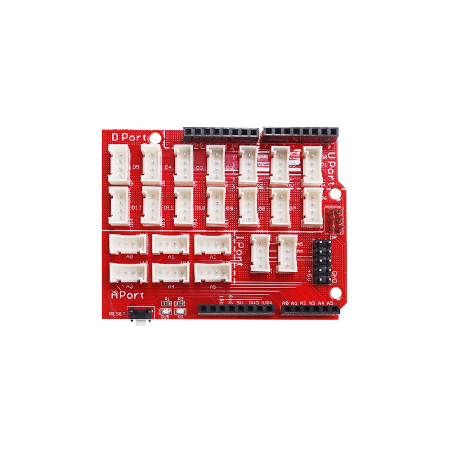 The Crowtail - Base Shield Arduino 2.0 plugs into Arduino and is the foundation of the Crowtail system. Crowtail Arduino 2.0 Shield ALL I/O ports of the Arduino are exposed and adapted into Crowtail connectors which include digital I/O, analog I/O, and specialized ports(I2C, UART).