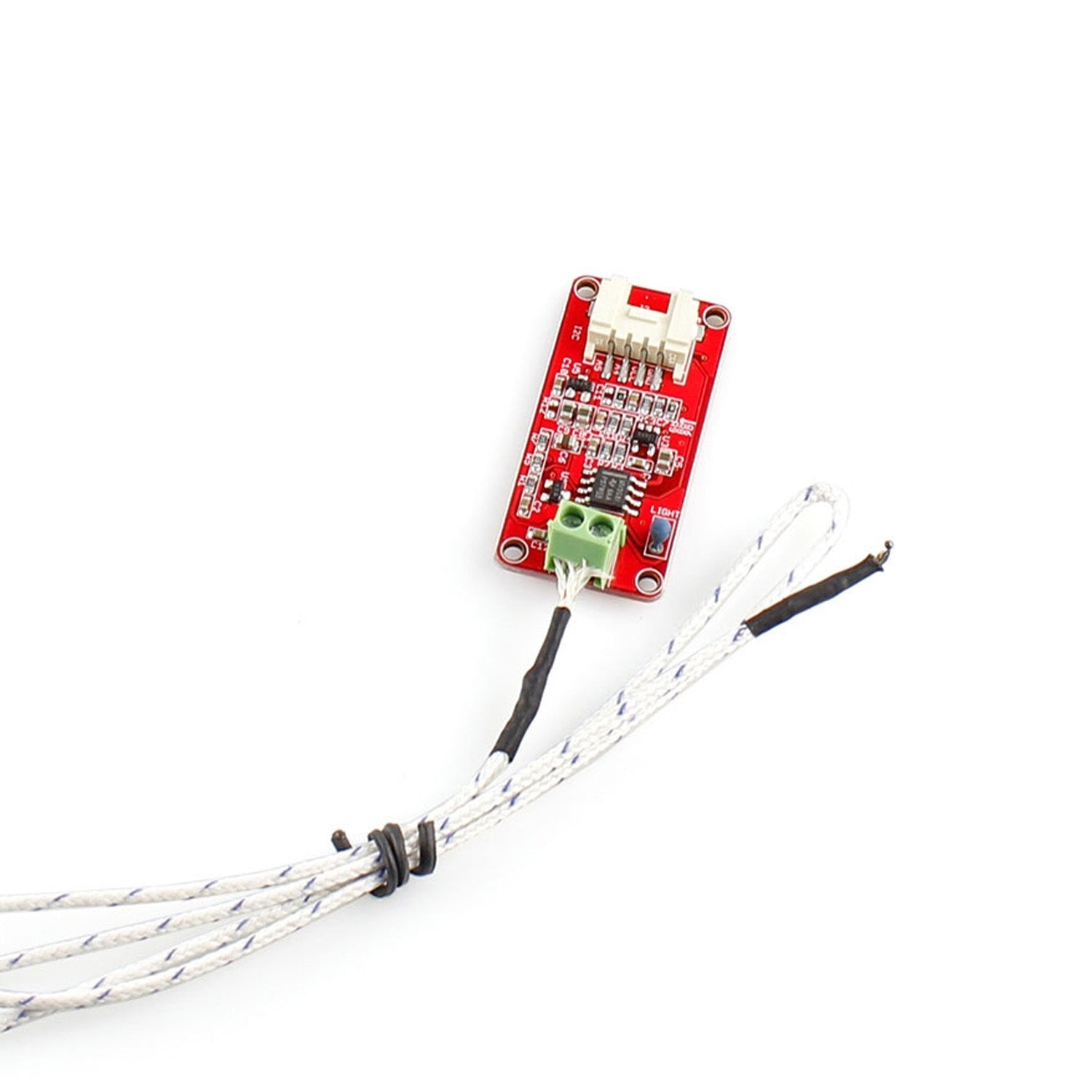 Crowtail- Thermocouple Sensor 2.0 are very sensitive, requiring a good amplifier with a cold - compensation reference. The high accuracy thermocouple Uses a K-type thermocouple Temperature detection, with a Thermistor to detect The ambient Temperature as Temperature compensation. The detectable range of this Sensor is -50-600℃, and The accuracy is ±(2.0% + 2℃)