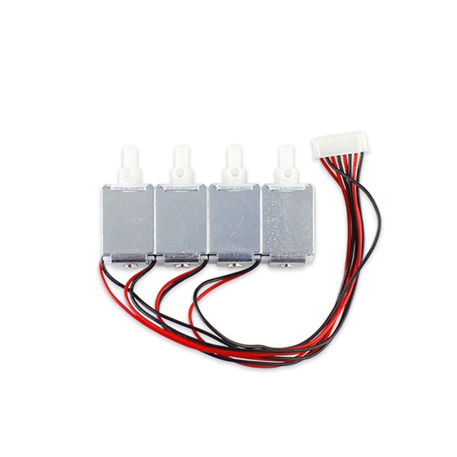 This is a DC 12V Four-Way Solenoid Valve 2.1 control four-way solenoid valve, which has an inlet and four air outlets, you can individually control the outlet of each outlet, so the outlet can be used alone and can also be used with four. It will give your project a great convenience. Outlet and inlet diameters are 8mm. The length of the solenoid valve is about 80mm, height is about 48mm, can be used in many DIY projects which can save a lot of space. Solenoid valve on both sides of a fixed hole to facilitate fixed. Each outlet has a separate wire to control. It depends on you about how to use it.