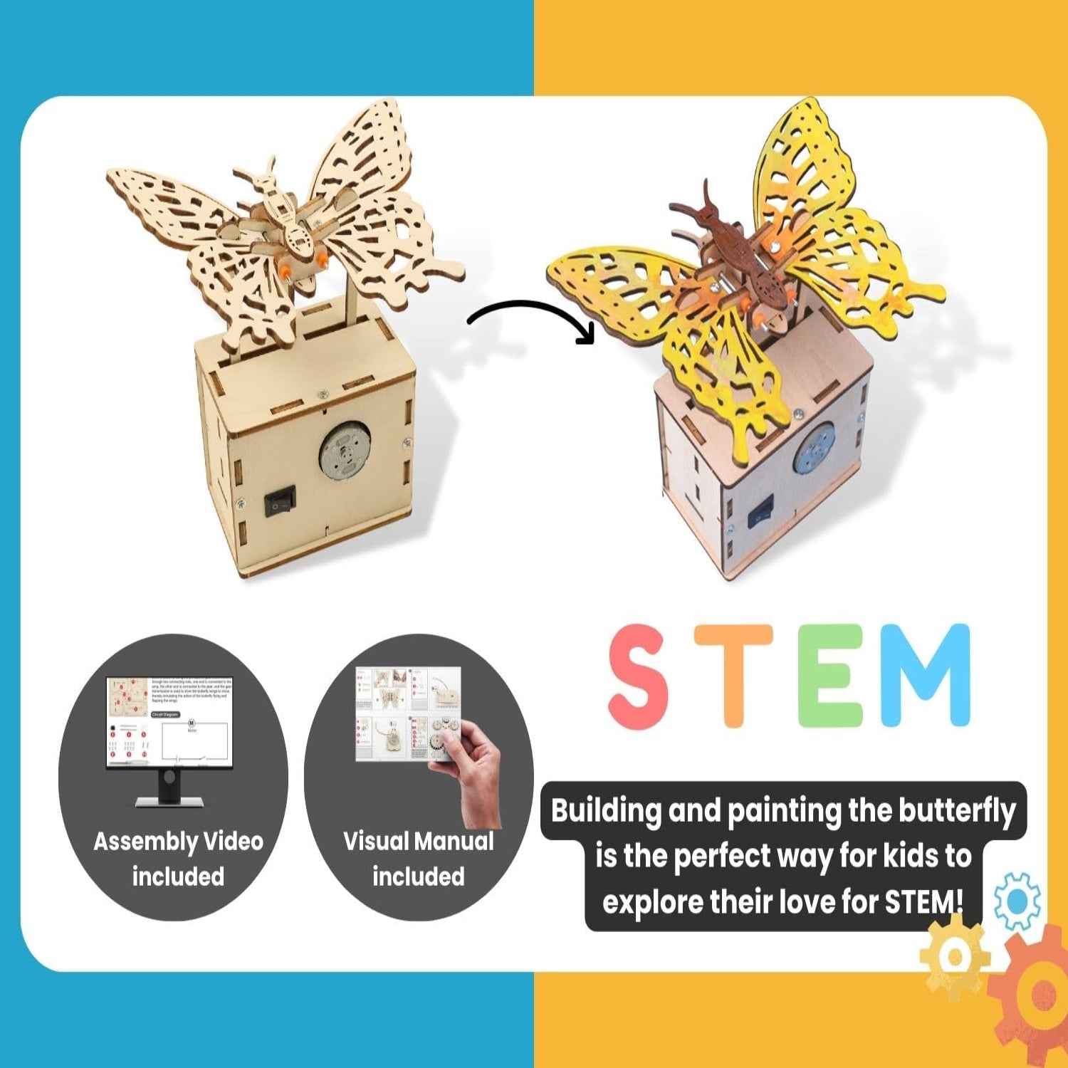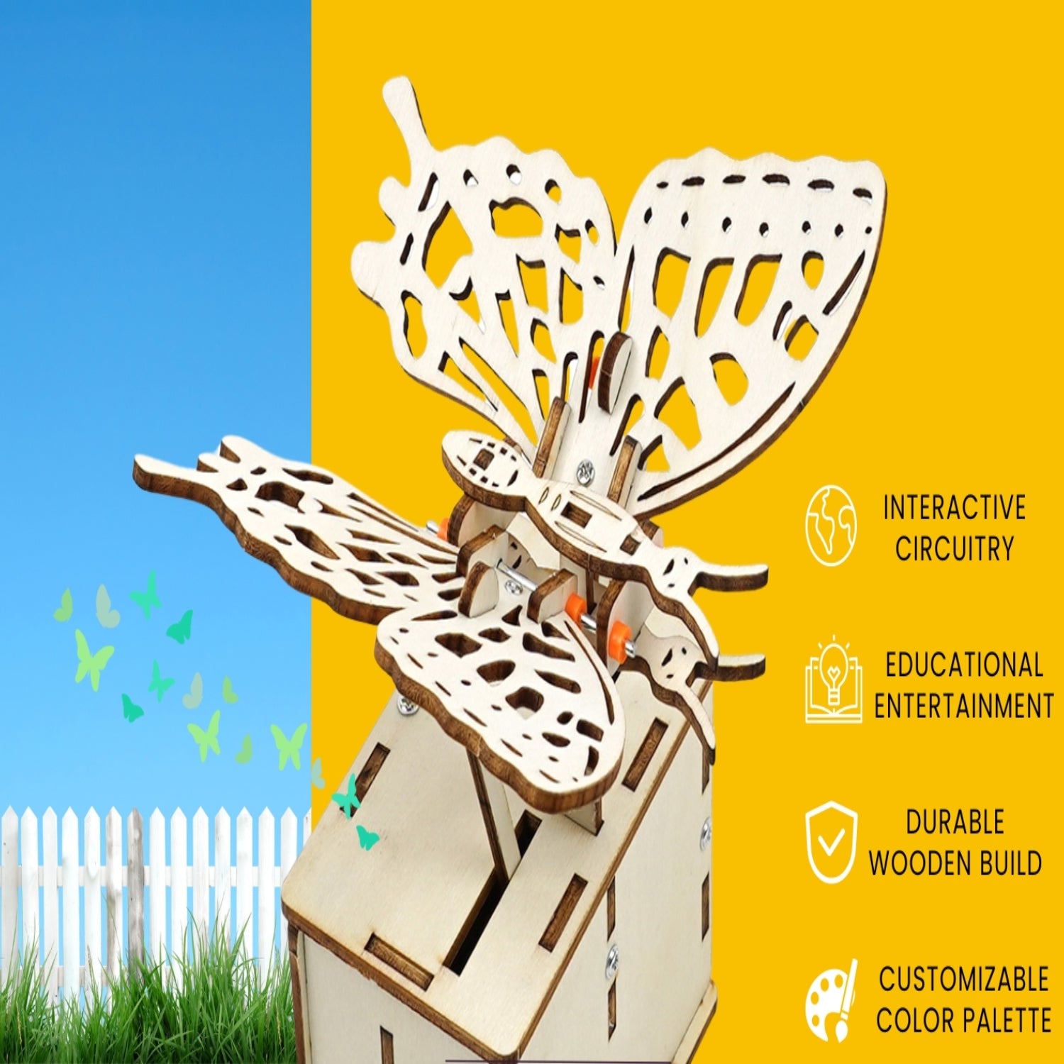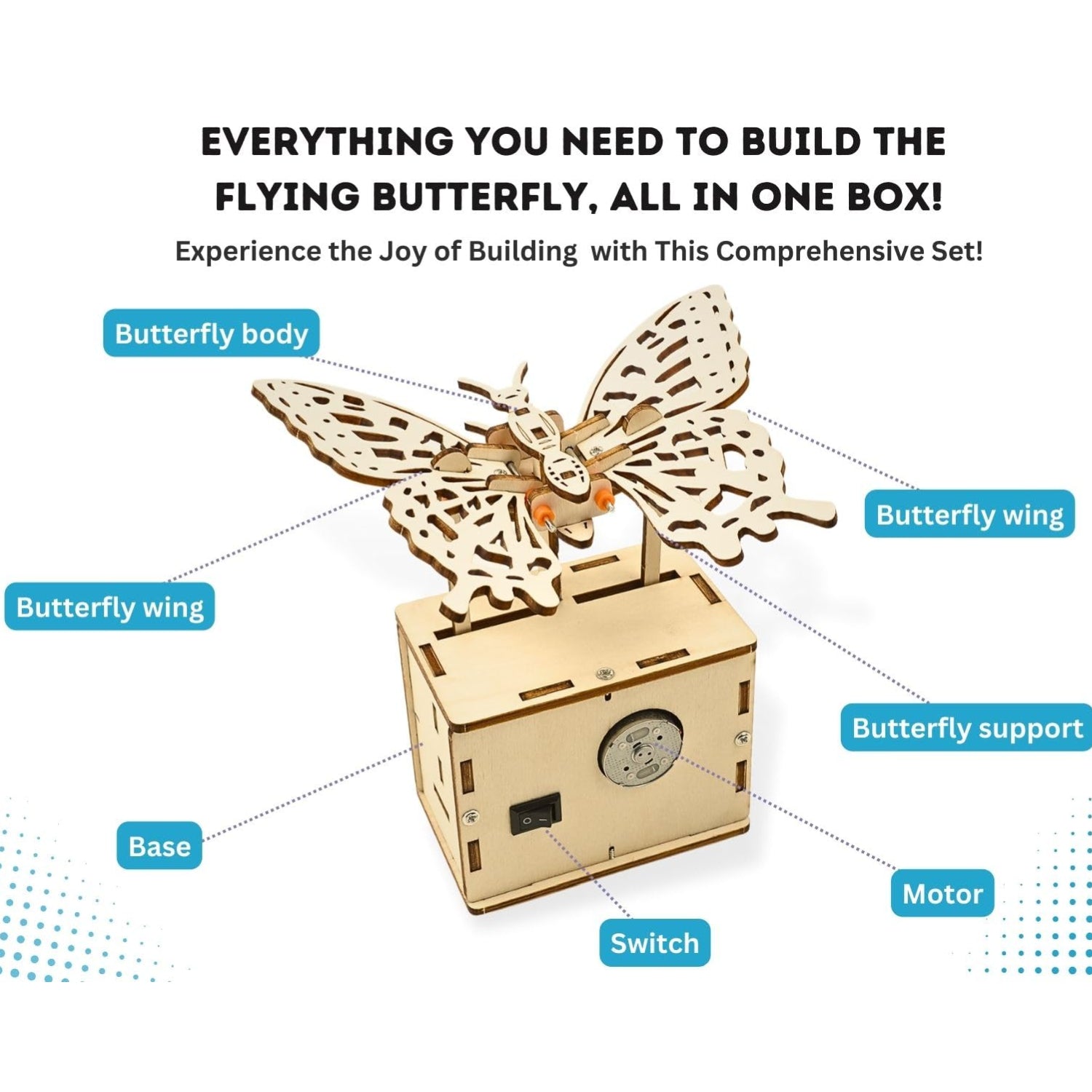 1 x Electric Flying Butterfly STEM Kit DIY Wooden Butterfly STEM Kit 3D Wooden Butterfly Puzzle Toy Electric Flying Butterfly Woodworking Toy For Kids Ages 8-12
