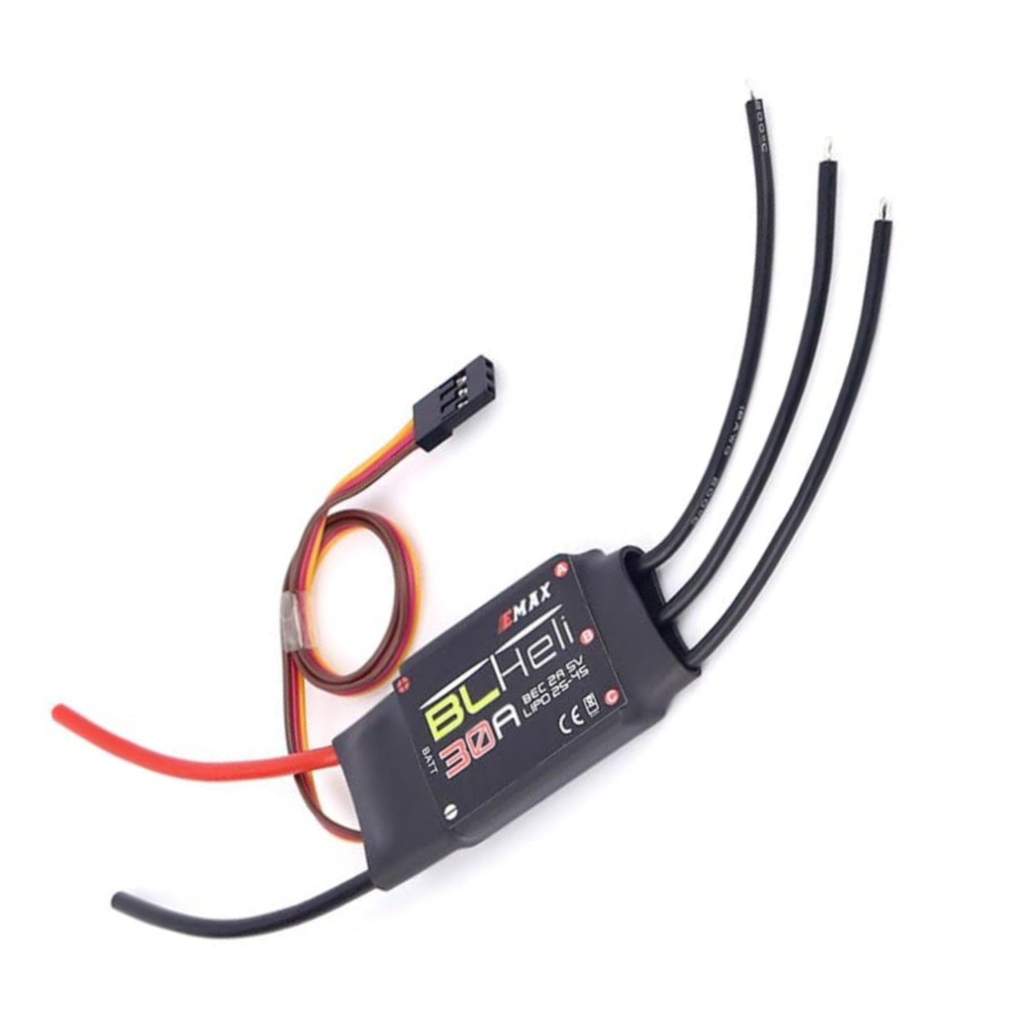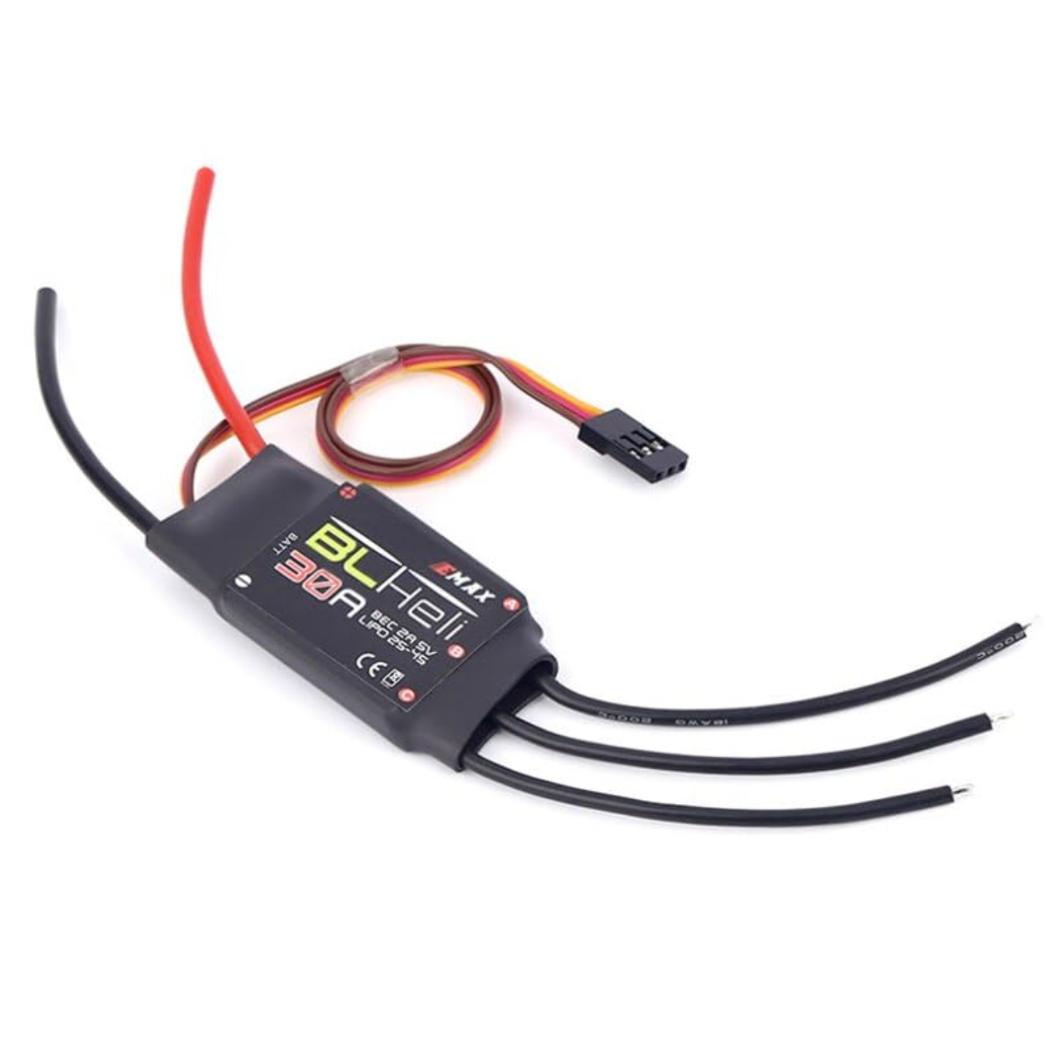 Emax BLHeli Series 30A ESC is a brushless DC motor speed controller. The low output resistance greatly enhances power stability, and this will improve the battery life. The EMAX BLHELI ESC is programmed to start the brushless DC motor. This ESC has a greater current handling capacity, which is 30A continuous, and the peak current is 40A for the last 10 seconds only.