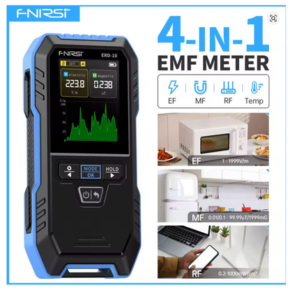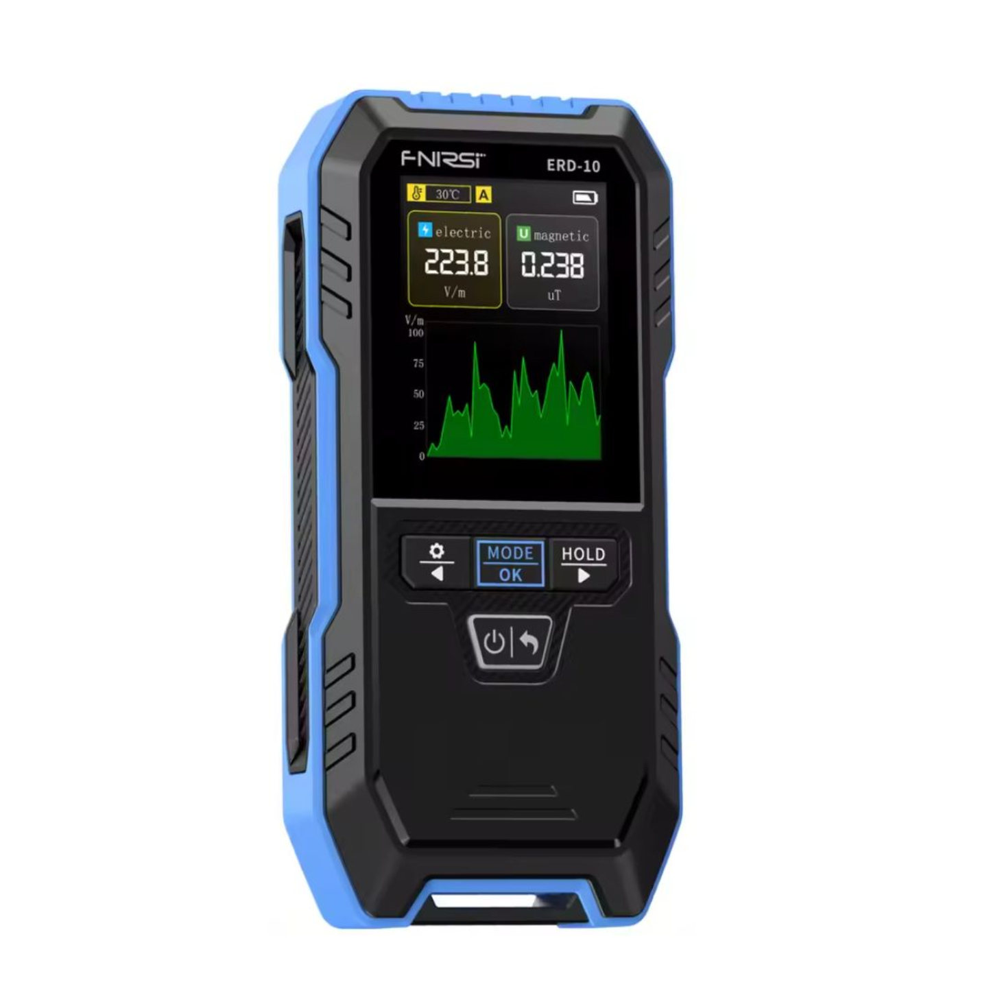 The ERD-10 is an electromagnetic radiation detector, a professional instrument used for measuring electromagnetic radiation. It is suitable for various application scenarios, such as homes, offices, vehicles, and outdoor environments. It features a 2.4-inch high-definition color screen and supports monitoring of electric field strength, magnetic field strength, radiation power, and environmental temperature.