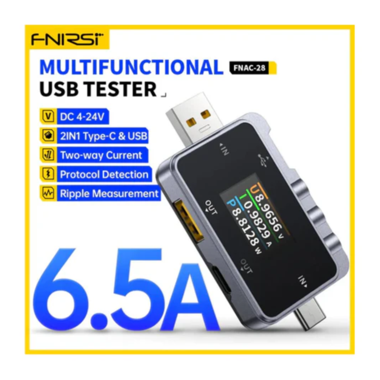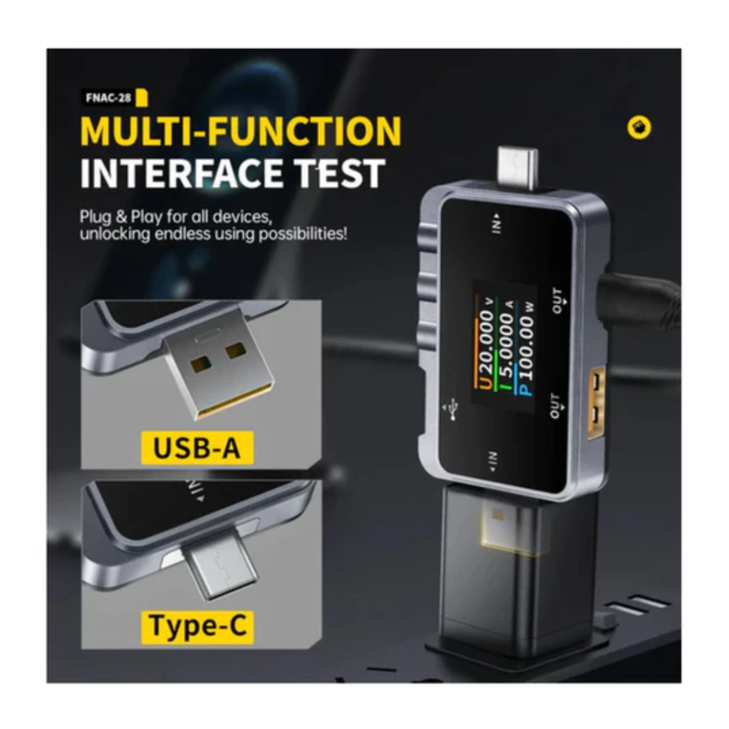 The FNAC-28 USB Tester is a multifunctional USB voltage and current meter as well as a quick charge trigger device for mobile communication terminals.