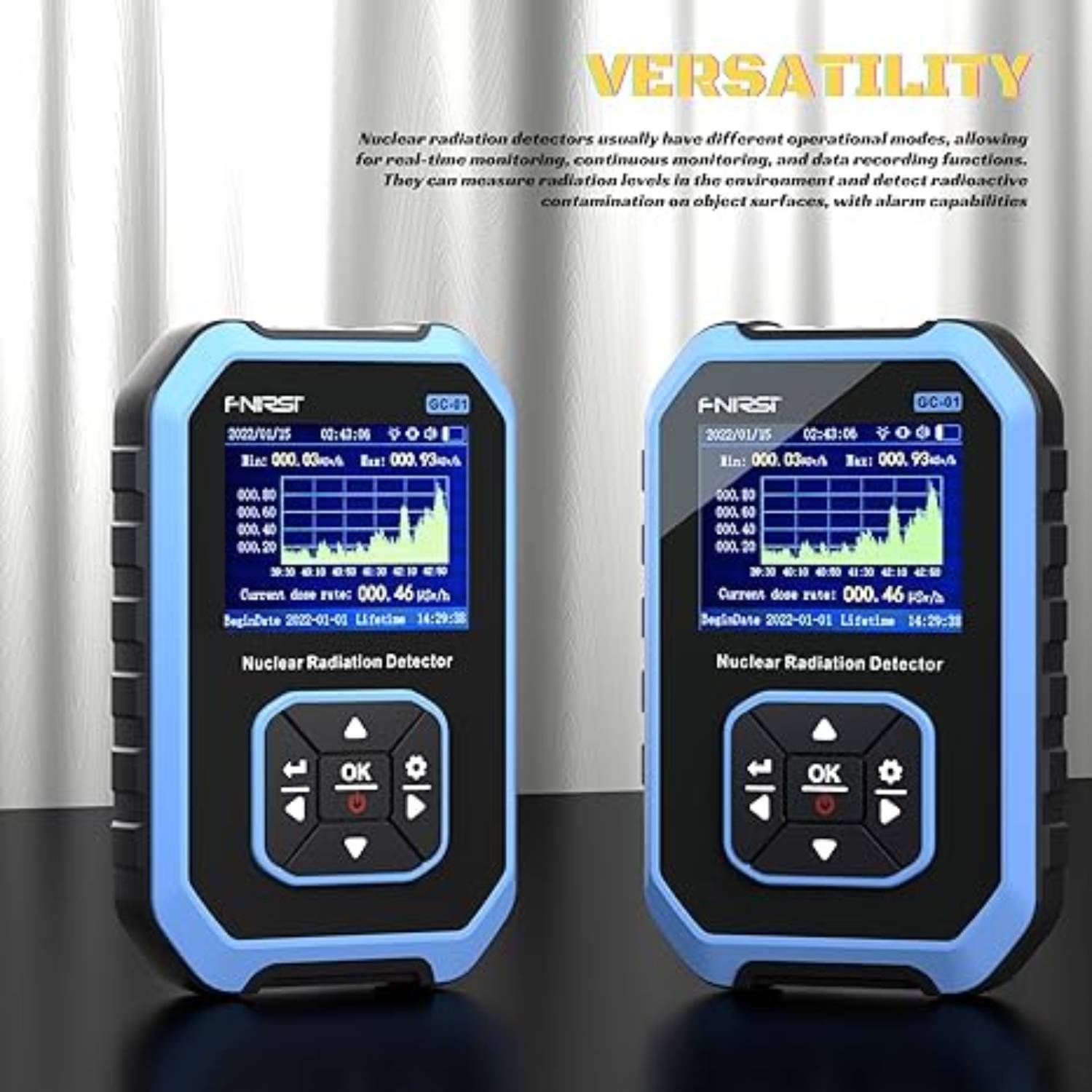 The FNIRSI GC-01 nuclear radiation detector uses a higher-precision Geiger-Miller counter. Counter for detecting the intensity of ionizing radiation (beta particles, gamma rays, and x-rays).