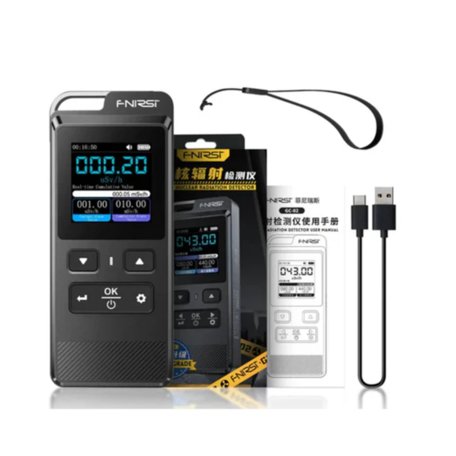 - 1 x FNIRSI GC-02 Geiger Counter Nuclear Radiation Detector