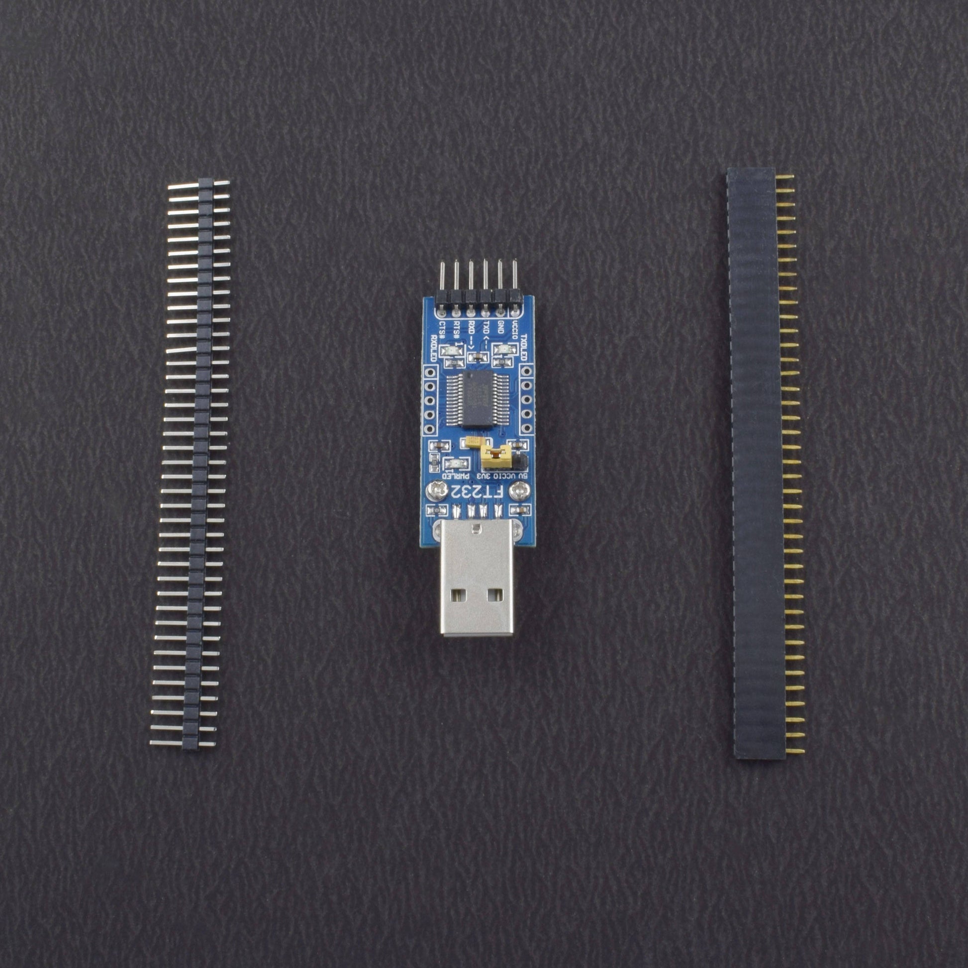 - TXD ↔ MCU.RX (signal direction: MCU.RX << FT232 << PC.TX)