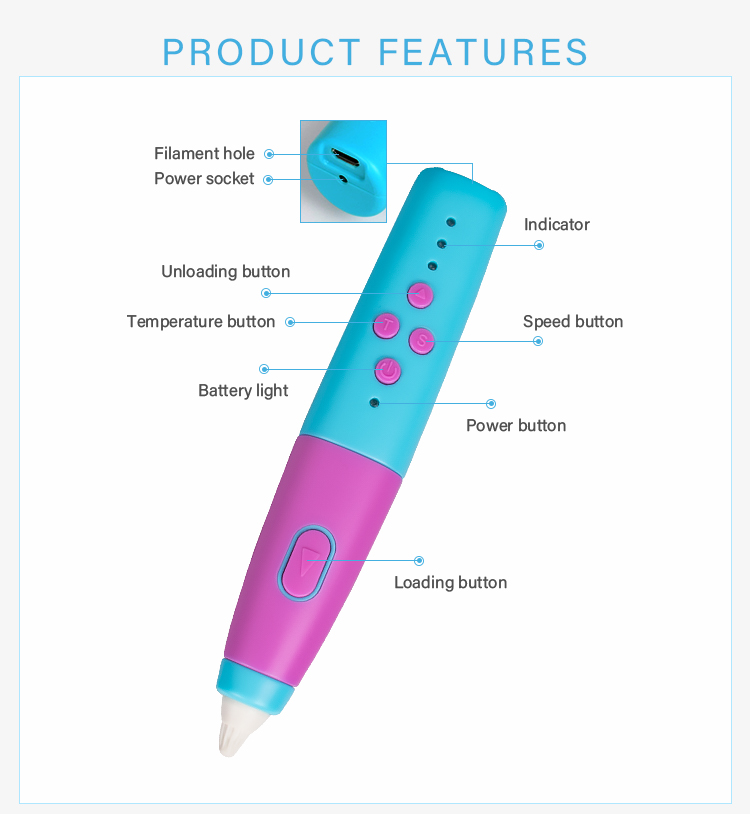 The Goofoo GF06 is a low-temperature 3D printing pen designed with safety and creativity in mind. Perfect for children and beginners, it features a child-safe low-heat design that prevents burns while allowing for smooth 3D drawing.