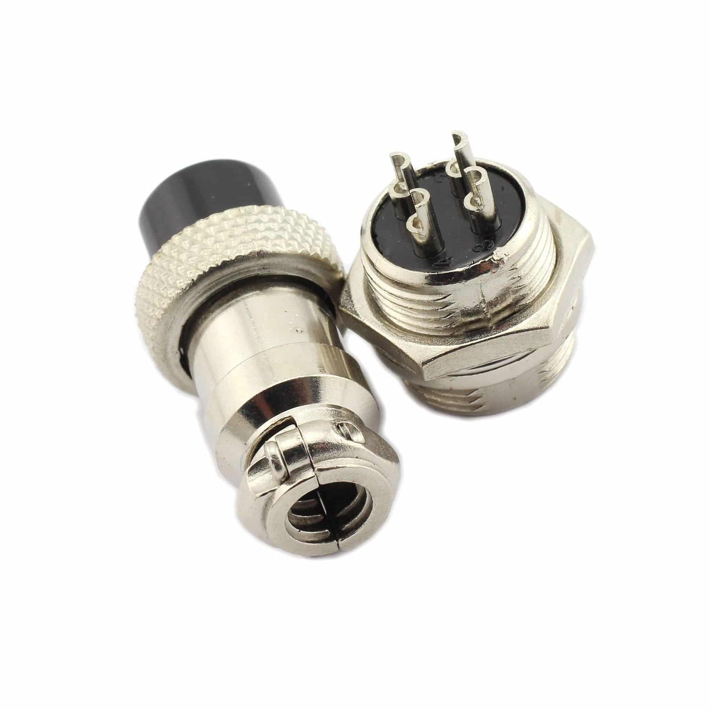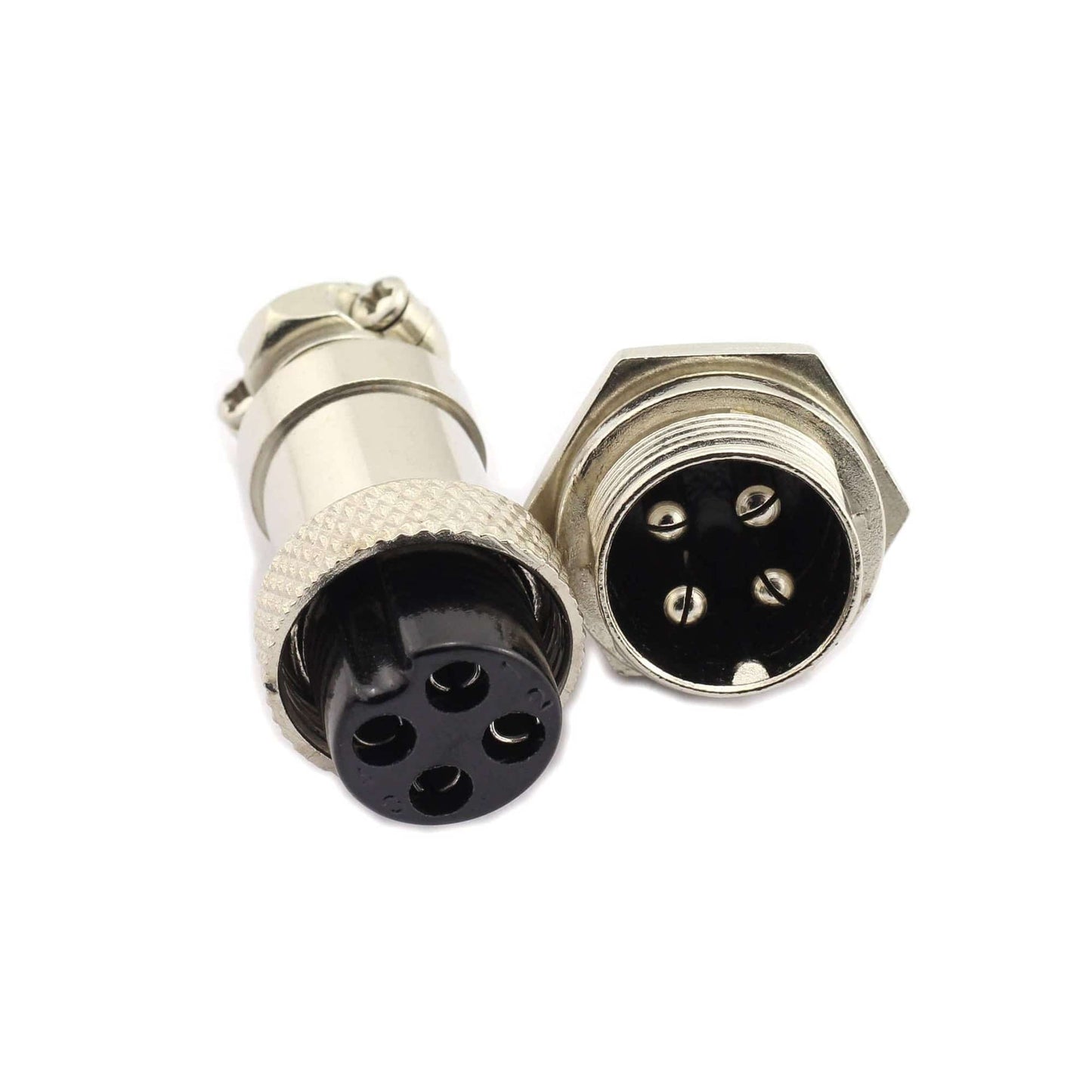 It is a GX-16 Metal Aviation Plug Male and Female Panel Connector. The GX-16 Metal Aviation Plug is mostly used to transmit signals or power. This type of connector is used in places where a watertight connection is required, and also in harsh environments. The connector is ideal for panel mounting and has separate male and female pins. The cable can be soldered directly on them.