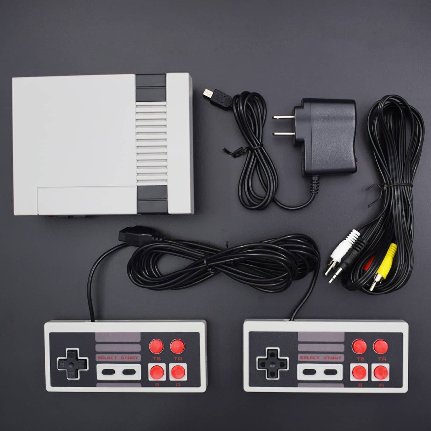 - Built-in 500 classic games, consisting of the main console and 2 joysticks which ensure you to share games with your friends or families.