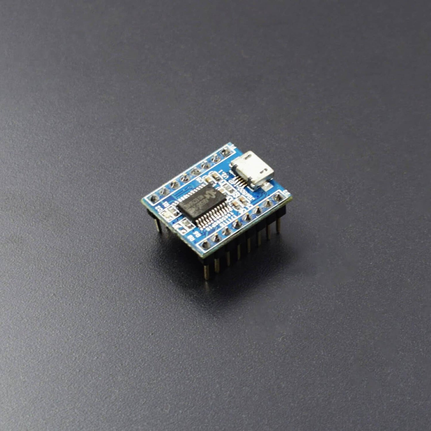 This Miniature device is used as a MP3 hardware decoder perfect for MP3 audio format! Create projects that have audio files that need to be played without the need of a microcontroller. Simply connect a Micro USB into the device with the other end to any computer.