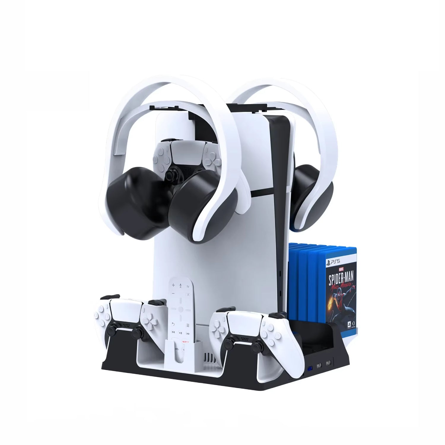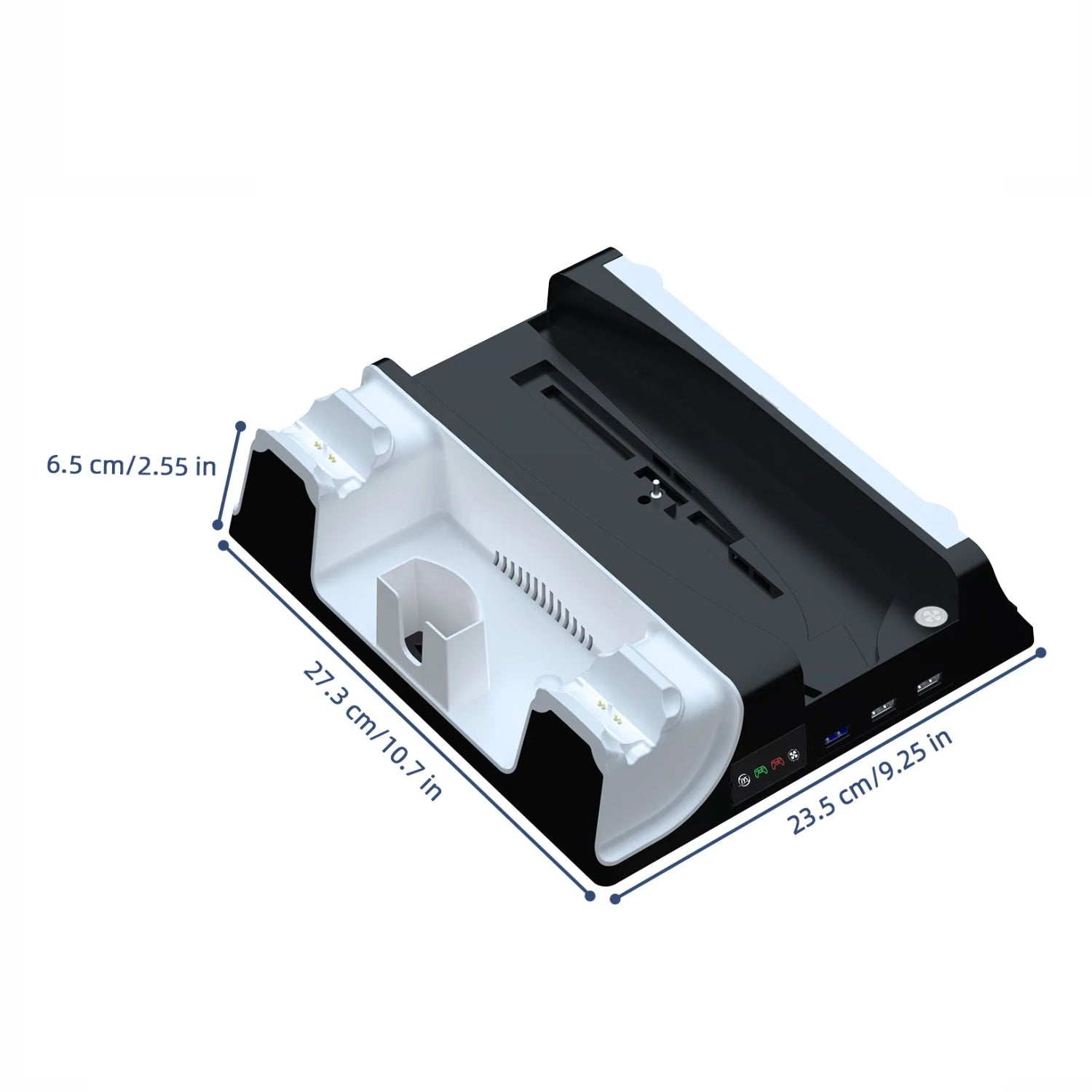 Elevate and Organize Your Gaming with the JYS Multi-functional Vertical PS5 Charging Stand! This versatile accessory is engineered for seamless compatibility with ALL PlayStation 5 models, including the original PS5 (Digital & Disc Editions) and the new PS5 Slim (Digital & Disc Editions).