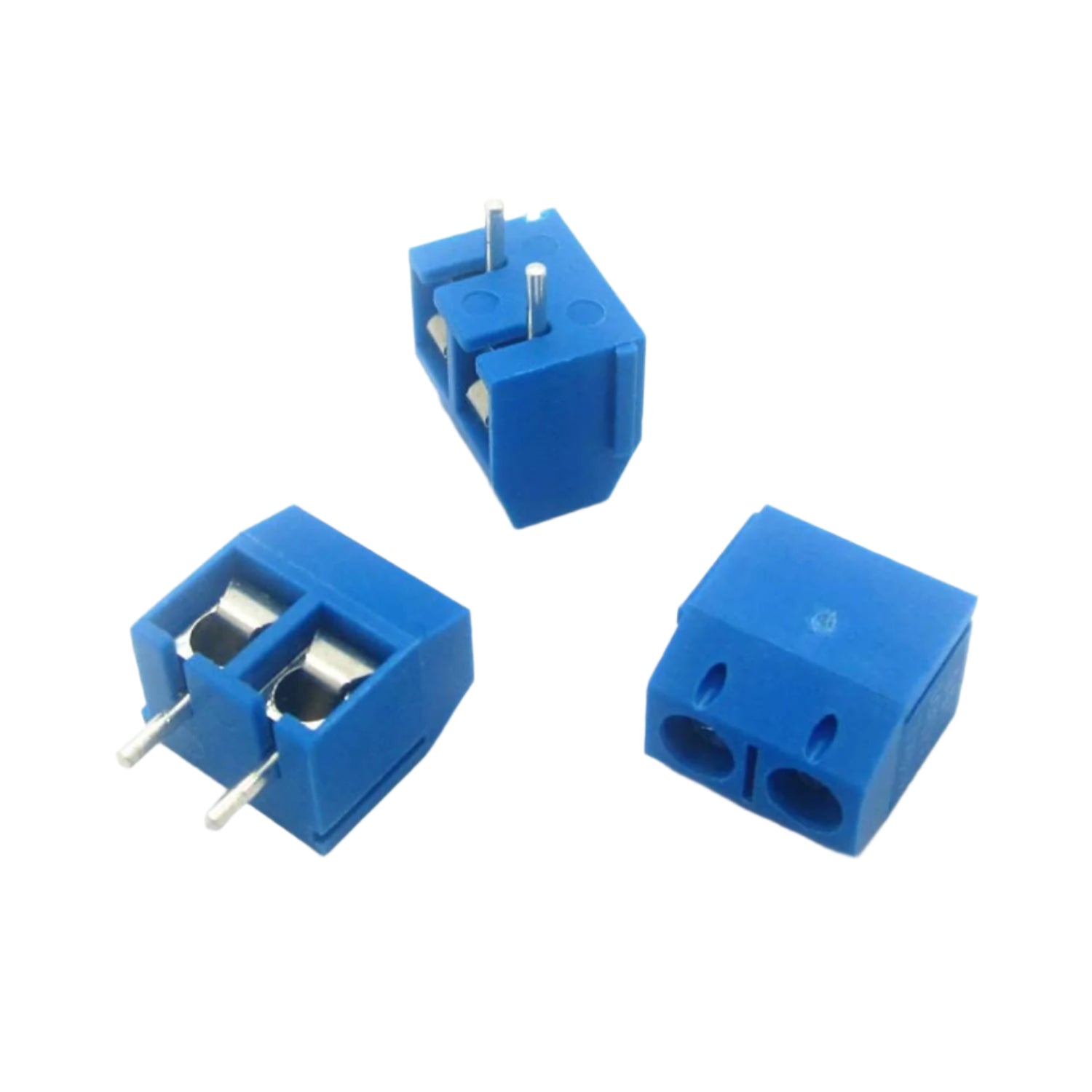 KF301 2 Pin Terminal Block Pitch Plug-in Screw Terminal Block Connector is a type of electrical connector, frequently used to connect wires to the PCB. The 5.08mm Pitch Terminal Block connector has a screw in each pin to fasten the wire securely. It has tin-plated brass for the pin header and nickel-plated brass contacts. The connector is made of PBT (Polybutylene terephthalate) which is mechanically strong, heat resistant(UL94-0), and has good insulation properties. 2 Pin Pcb Mount Screw Terminal Block Connector, 2 Pin Terminal Block, 2Pin Terminal Block, KF301 2 Pin 5.08mm Pitch Plug-in Screw Terminal Block Connector, 2 pin screw terminal, 2 pin screw Connector.