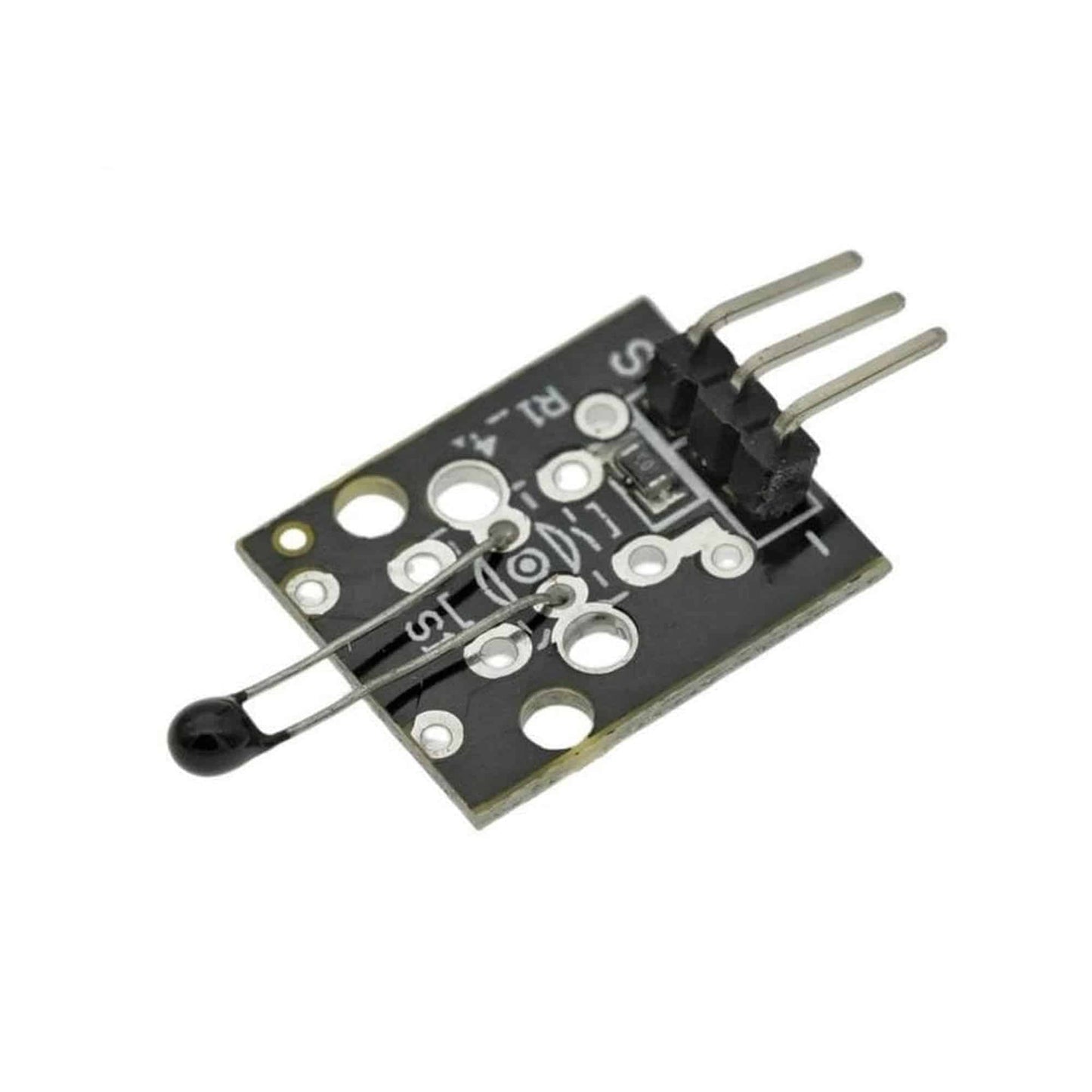 The KY-013 Temperature Sensor Module is based on the thermistor (resistance increases with the ambient temperature changes) which senses the real-time temperature of the surrounding environment changes. Change in temperature data in analogue form can be taken from this module on analogue IO pins, then through any microcontroller, it can be easily converted and displayed in Celsius degrees or any other respective Unit.