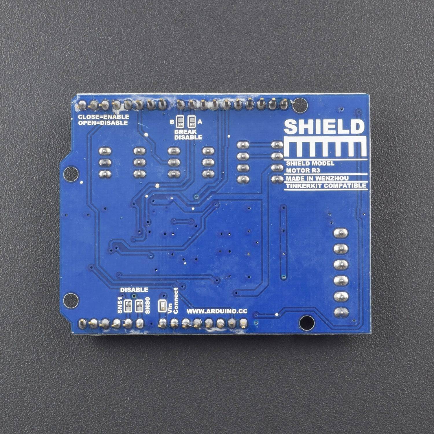 The Arduino Motor Shield is based on the L298, which is a dual full-bridge driver designed to drive inductive loads such as relays, solenoids, DC and stepping motors. It lets you drive two DC motors with your Arduino board, controlling the speed and direction of each one independently. You can also measure the current absorption of each motor, among other features. The shield is TinkerKit compatible, which means you can quickly create projects by plugging TinkerKit modules to the board. This shield have two separate channels, called A and B, that each use 4 of the Arduino pins to choose the rotation direction, vary the speed, fast brake or sense the current that is flowing through the motor. In total there are 8 pins in use on this shield. You can use each channel separately to drive two DC motors or combine them to drive one bipolar stepper motor. The shield can supply 2 amperes per channel, for a total of 4 amperes maximum. This shield has the 1.0 standard pinout that consist in 4 additional pins: 2 of them placed near the AREF pin, that are used for TWI communication, and the other 2 are placed near the RESET pin. The IOREF pin is used to adapt the shield to the board on which is mounted. The last one is not connected and is reserved for future uses.