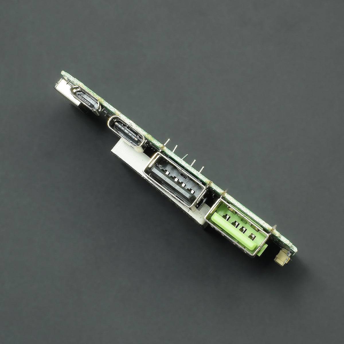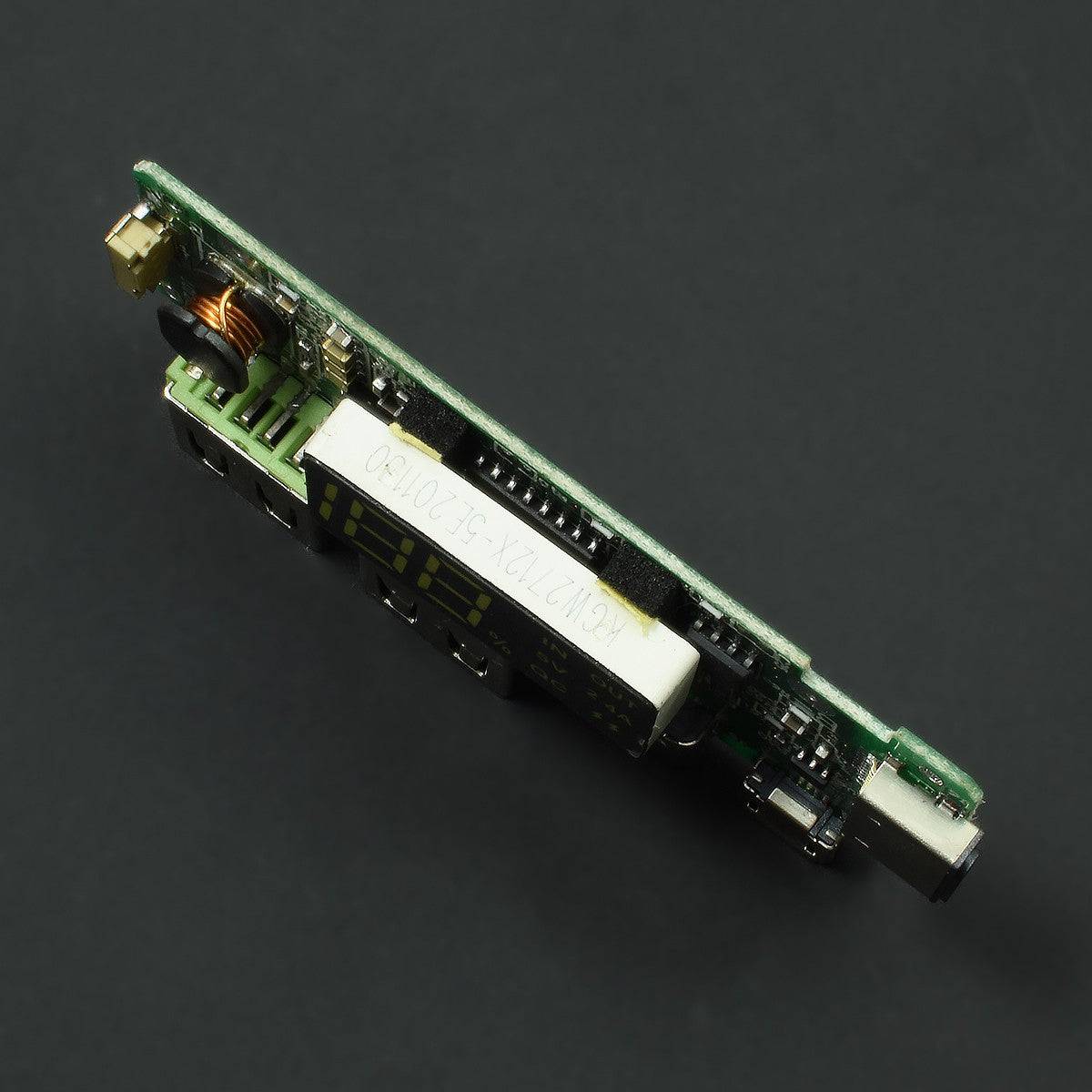 This module is a portable backup power supply with an input that matches the 5.0V adapter to charge the internal battery. Use built-in battery for portable device to provide 5.0V/3.0A USB2.0 supply output for external devices. It supports three USB data cable charging, including iphone and Android. The system will provide an accurate battery indication after a complete charge and discharge. The LED digital screen displays the current battery charge while charging.