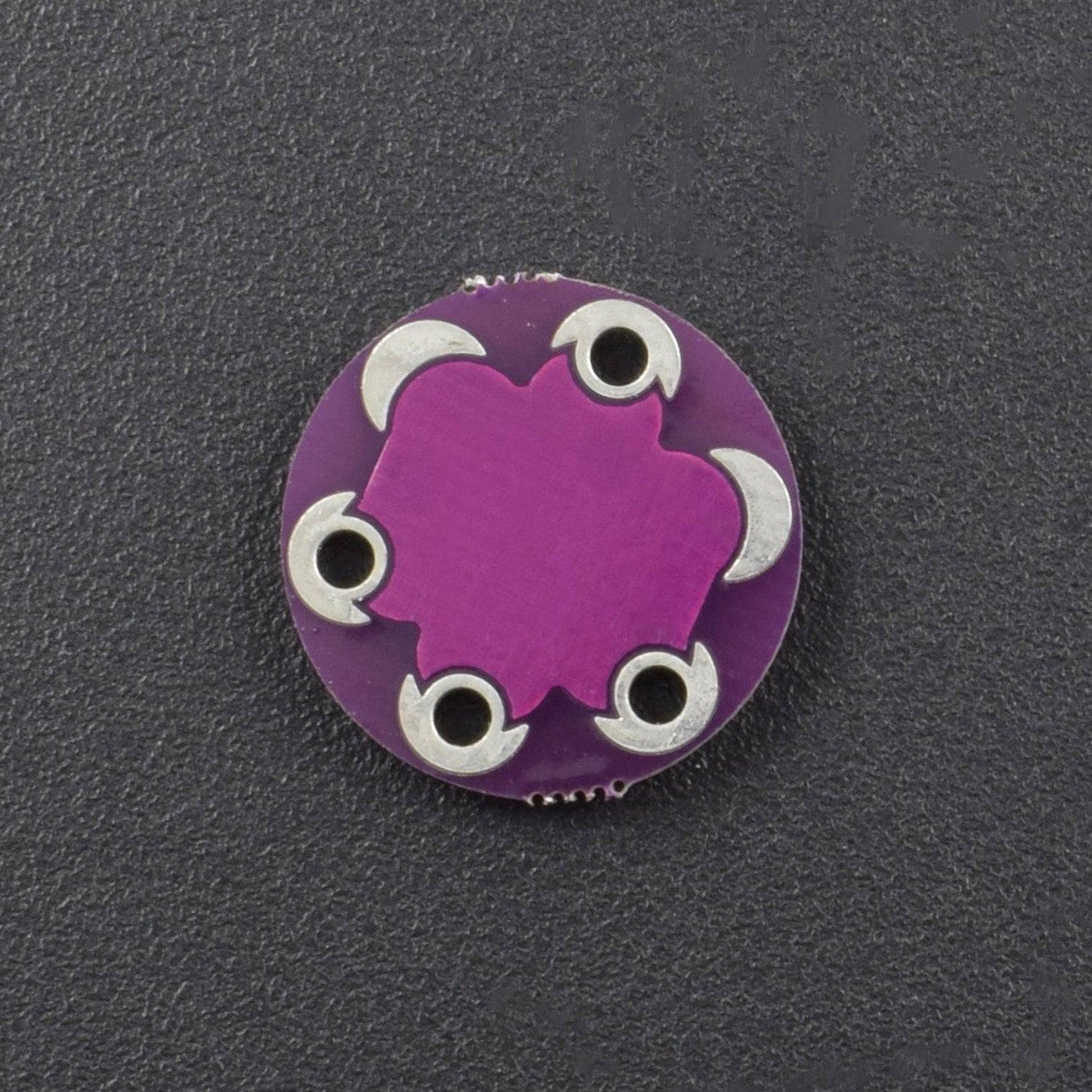 This is LilyPad Tri-Color LED RGB Module for Arduino with you can blink any color you need! Use the Tri-Color LED board as a simple indicator, or by pulsing the red, green, and blue channels, you can create any color. Very bright output. This is a common anode design – to turn on a channel you simply need to ground one of the R/G/B pins to illuminate that channel. LilyPad is a wearable e-textile technology. Each LilyPad was creatively designed to have large connecting pads to allow them to be sewn into clothing. Various input, output, power, and sensor boards are available. They’re even washable.