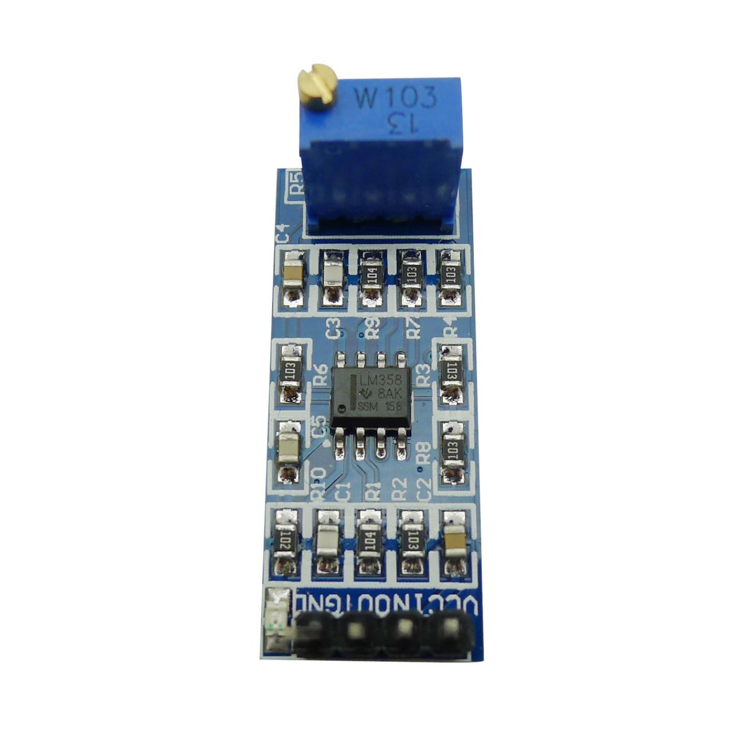 The XD-21 LM358 Amplifier Module is suitable for the use of a single power supply with a wide power range and is also suitable for a dual power supply. The signal amplifier module is equipped with a 10K adjustable potentiometer, which can let you adjust the magnification. With the signal and operation amplifier module, you can amplify the signal and operation max 100 times. The amplifier module is designed with a power Led indicator, which can let you know the power clearly.