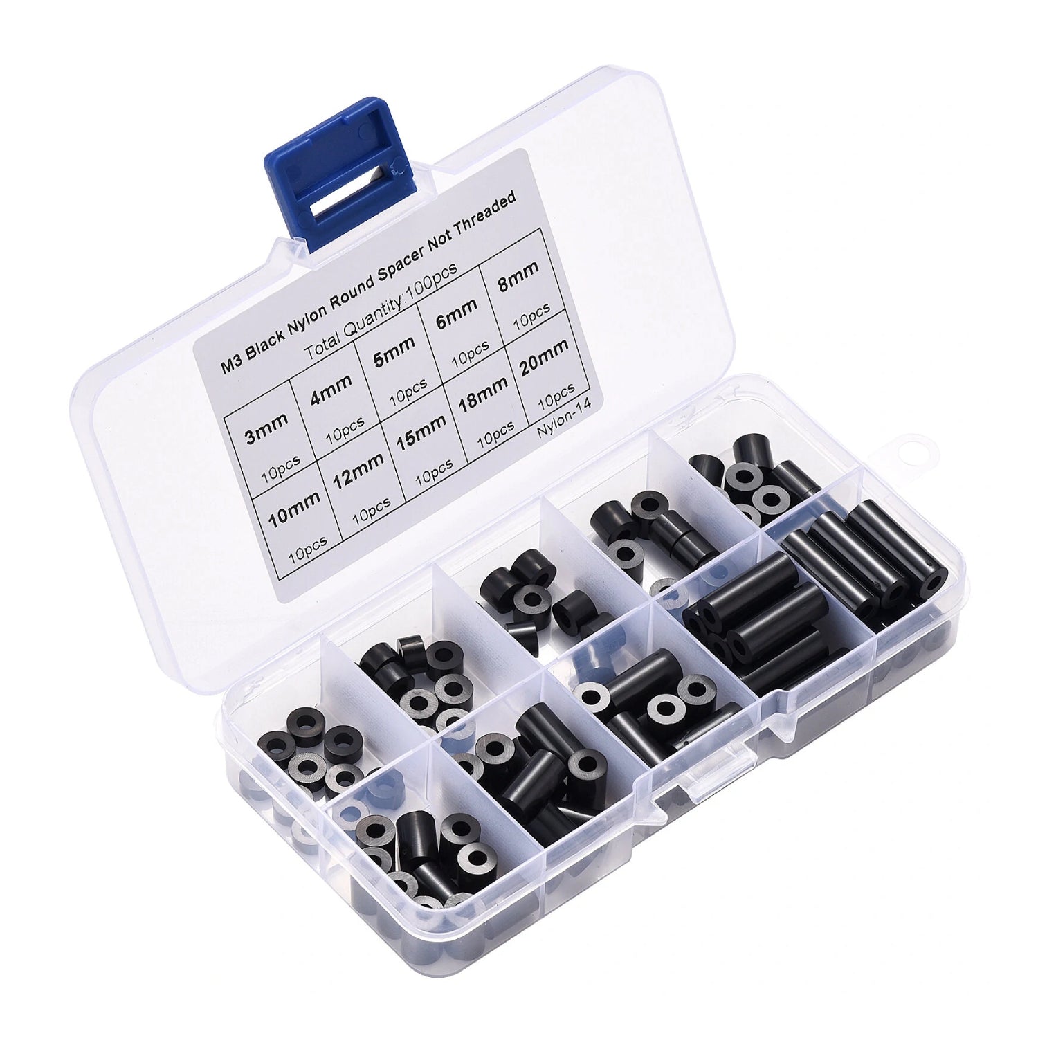 This M3 Nylon Spacer Assortment Kit provides a wide range of sizes for precise M3 screw spacing. Made from durable nylon, these spacers offer excellent insulation and resistance to chemicals. M3 Black Nylon Spacer Kit Save time and money with this all-in-one spacer kit for M3 screws. The black nylon material provides durability and electrical insulation.
