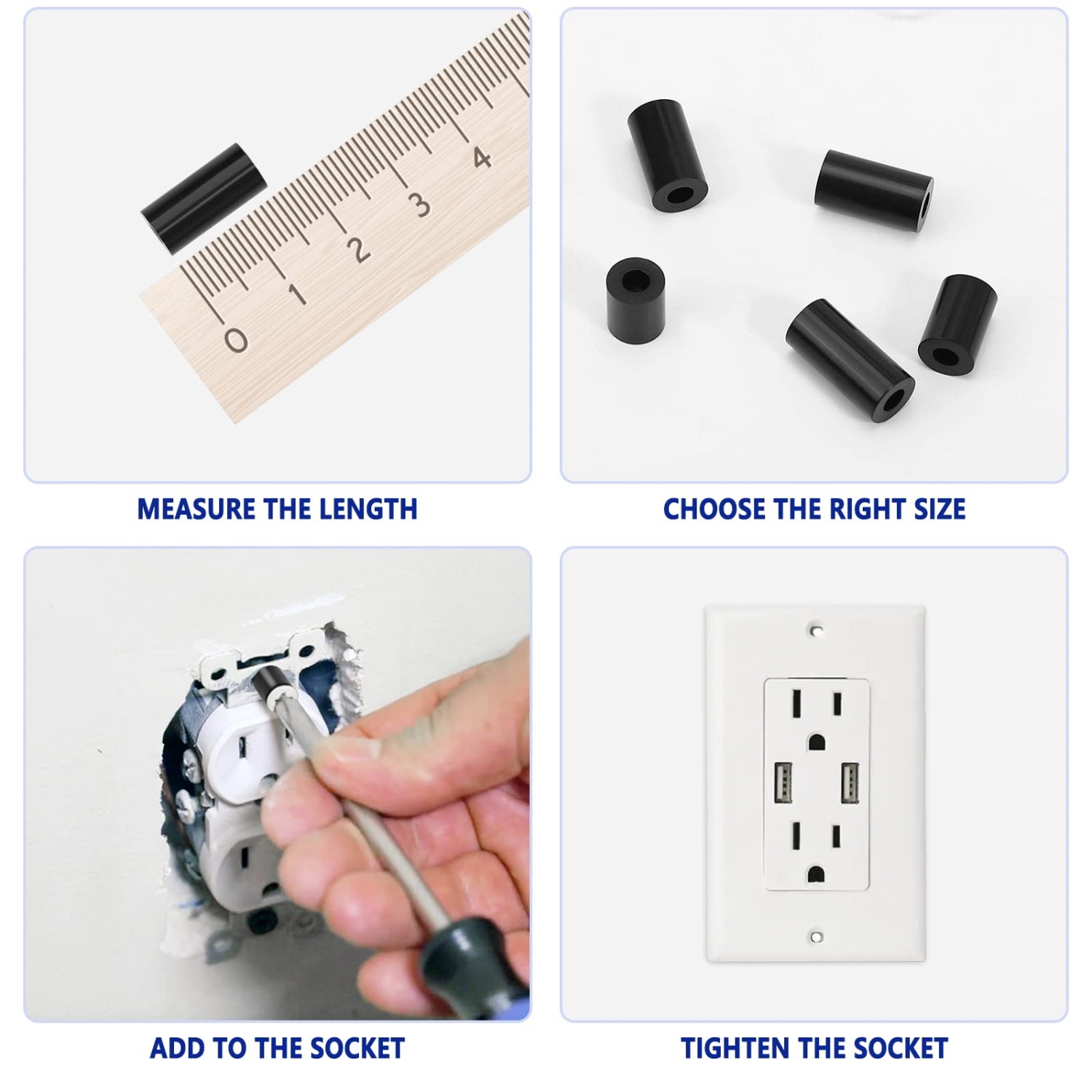 1 x M3 Nylon Spacer Assortment Kit Electrical Outlet Screws Spacers Plastic Outlet Spacers Rubber Round Spacer For Electrical Screws Switch And Receptacle - Black