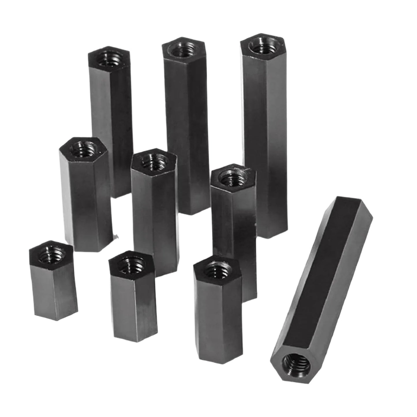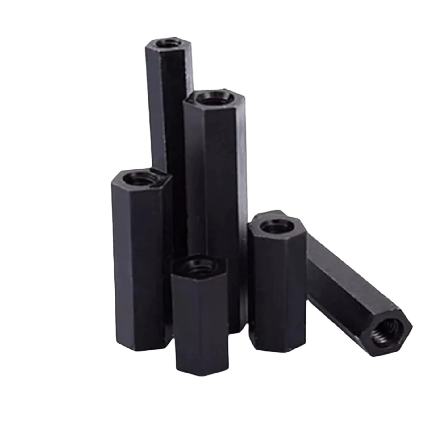 Nylon Hex Spacer standoffs are made from solid nylon or with metal threaded inserts and a nylon insulation material. These versatile standoffs are designed to mount and secure your PCB as well as elevate your PCB from other components such as the inside of a computer chassis or another PCB, similar to spacers.