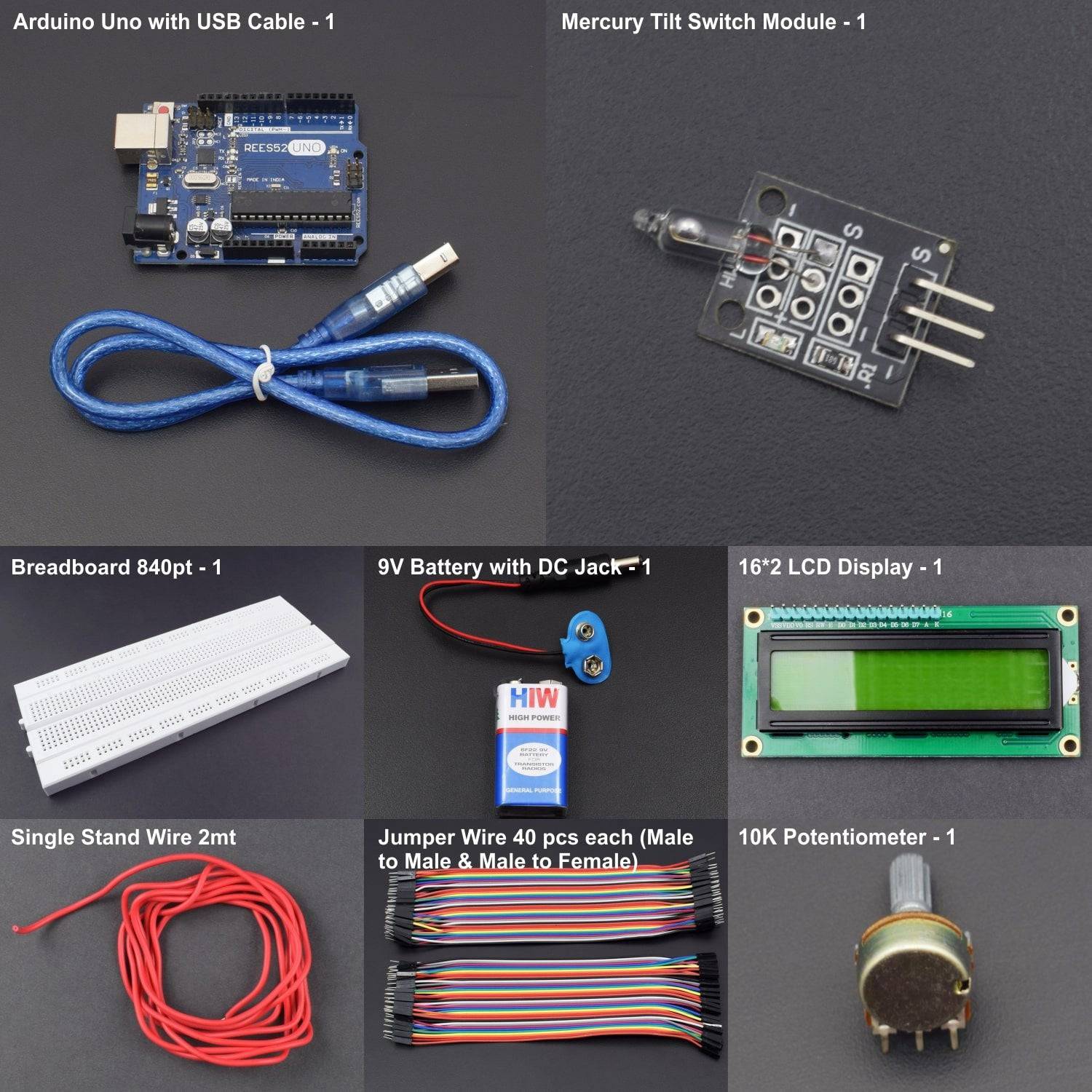 Welcome to the Arduino Based Project which consists of 1602 LCD and Tilt switch module. The basic working of Tilt switch module is being described here. A Tilt Sensor switchis an electronic device that detects the orientation of an object and gives its output High or Low accordingly. Basically, it has a mercury ball inside it which moves and makes the circuit. So tilt sensor can turn on or off the circuit based on the orientation.